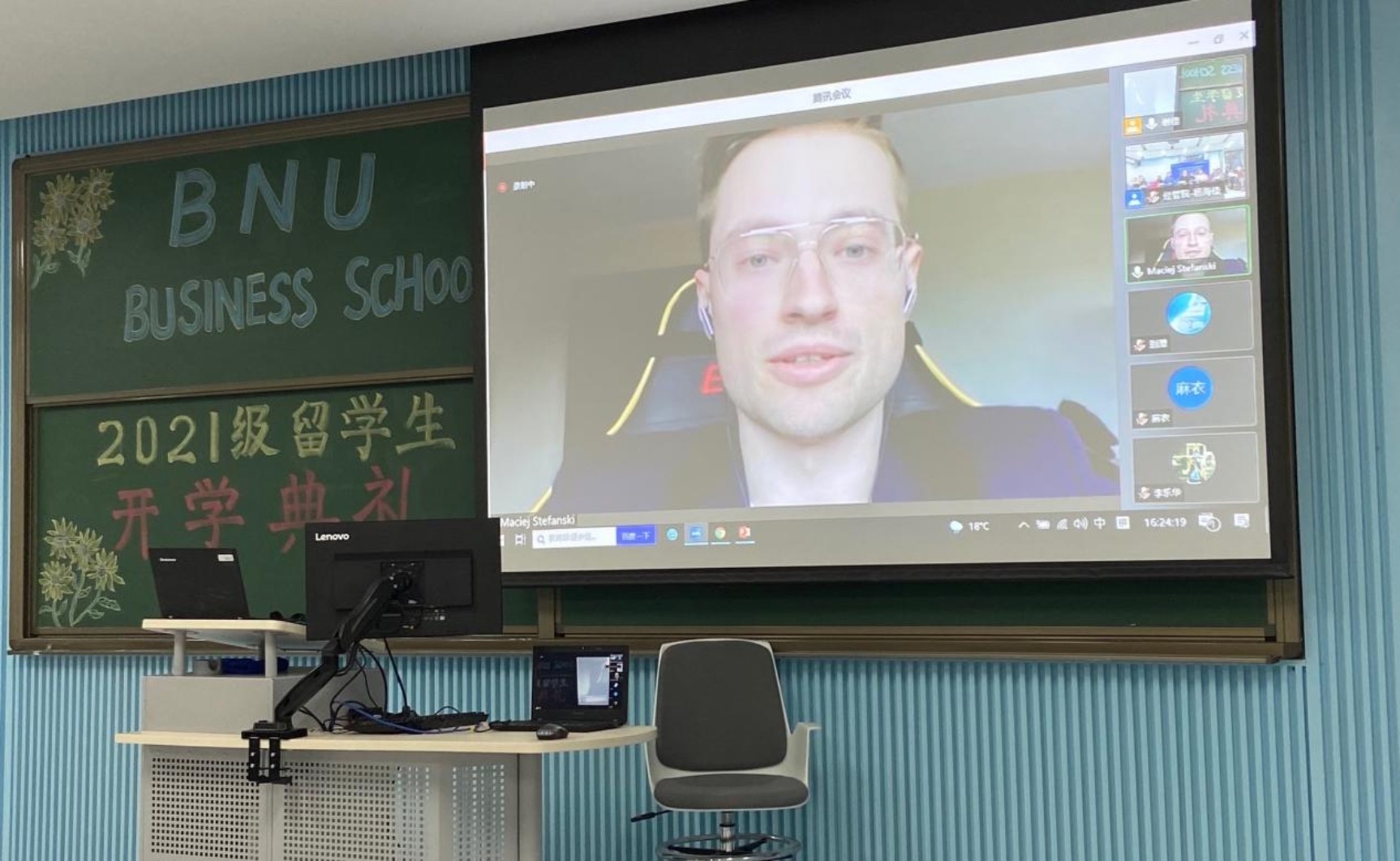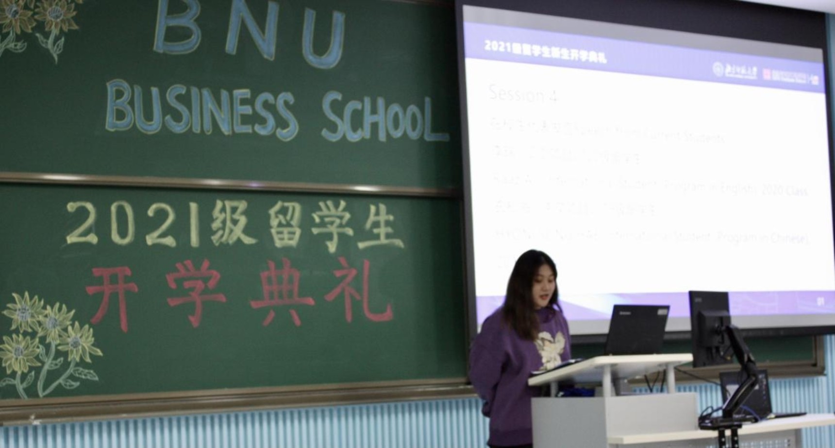 在新生发言中,2021级留学生Stefanski Maciej(波兰籍)通过在线的方式与同学们分享了他的入学感受和目前的生活状态。他表达了不能来到现场的遗憾,以及早日回归北京校园的期盼。2021级留学生Hong Analia Belen(阿根廷籍)代表中文项目新生留学生发言,她分享了自己在中国求学的经验,表达了对中国文化的热爱与敬重。