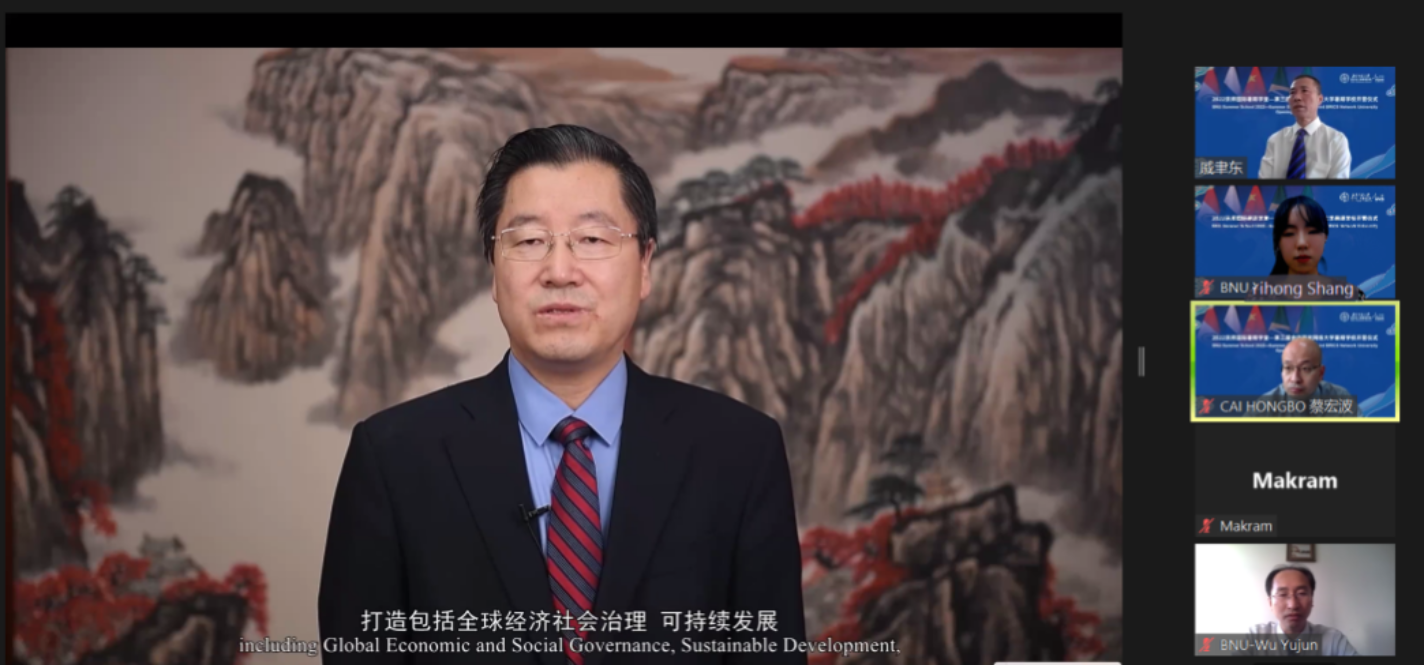 7月10日,2022京师国际暑期学堂—第三届金砖国家网络大学暑期学校开营式在线举行。潮人论坛 副校长周作宇、国际交流与合作处处长吴玉军、潮人论坛 院长戚聿东、金砖国家合作研究中心主任王磊,美利坚大学商学院前院长Erran Camel,中国人民大学财政金融学院副院长张成思,湖南大学经济与贸易学院副院长徐航天,河南大学金融发展与风险评估中心主任Mark El-Shagi,法国里昂商学院亚洲校区校长顾问林桦,德国zeppelin大学经济学院院长Jarko Fidrmuc,俄罗斯高等经济学院大学国际合作中心副主任Maria Budrevich、伊比利亚美洲部主任Alina Shcherbakova,巴西坎皮纳斯大学孔子学院院长Bruno de Conti,乌拉尔联邦大学经济与管理研究生院学术委员会主任Zhanna Belyaeva,以及本次暑期学校来自13个国家和地区的87名学员参加了开营仪式。潮人论坛 副院长蔡宏波主持仪式。