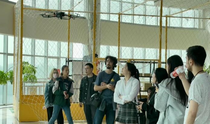 企业人员为学生们讲解无人机应用