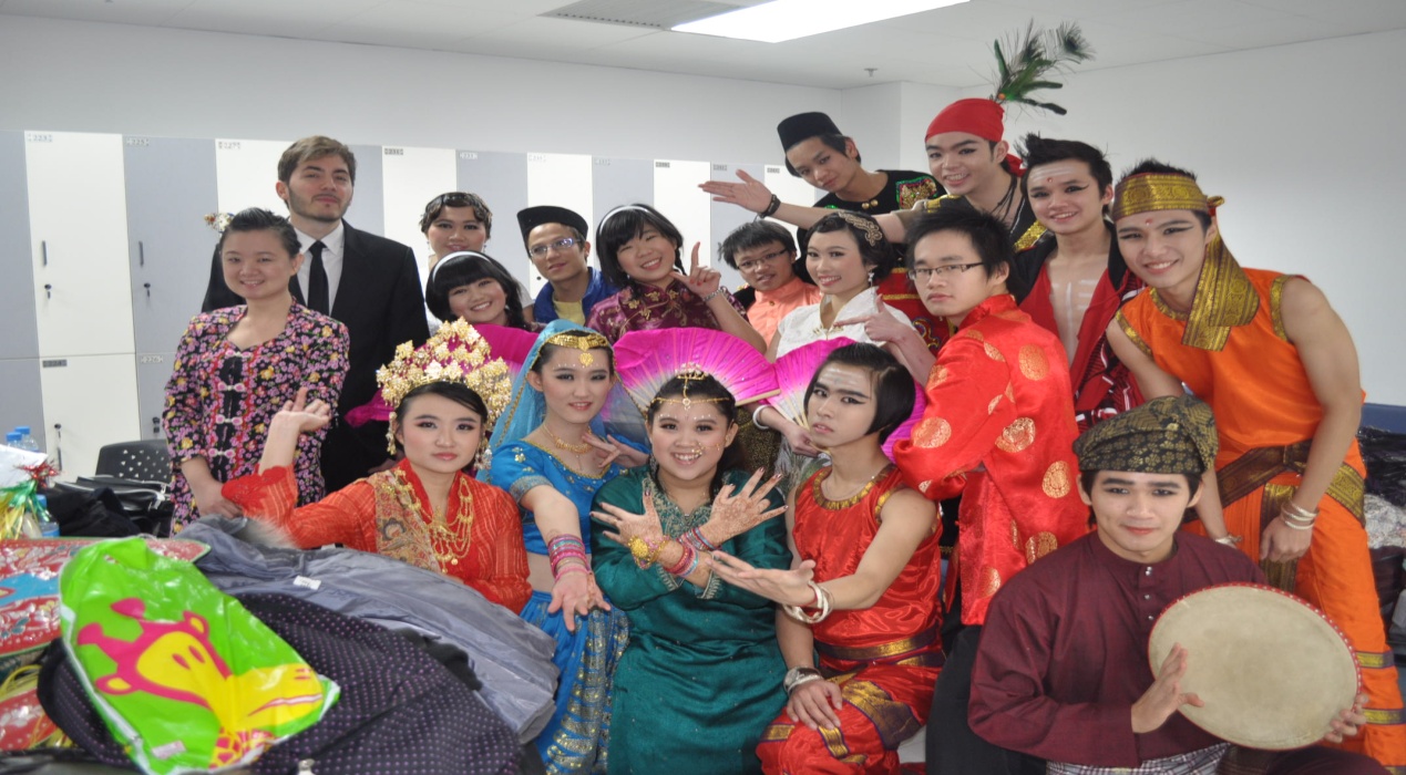 参加马来西亚舞蹈的留学生合影,潮人论坛 留学生李杨(前排第3人)等参加表演