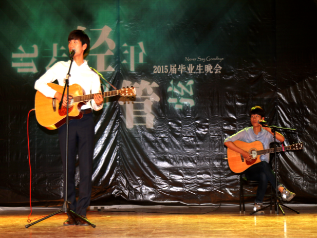 年年参加毕业生文艺晚会的金基喆,在今年的晚会上,再次激情表演吉他弹唱,班级很多同学为他喝彩。