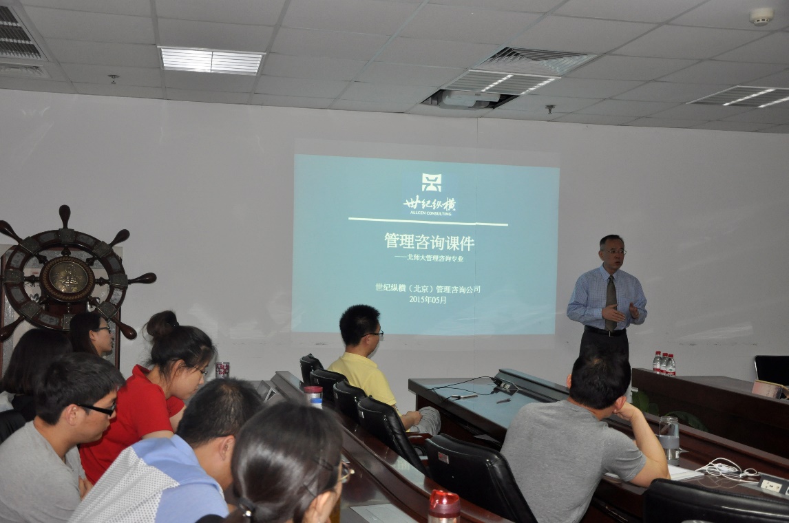 At 6 pm May 15, 2015, Lecture 3 of Chinese Management Consultancy Practice Lecture Series started in Room 1722 of the second main building. The honored guest invited to this lecture is Sun Tong, the general manager of Allcen Consulting. It was a busy Friday night, Mr. Sun and his assistant advanced to the classroom without having dinner. Students communicated with him face to face with great expectations and longings for management consultancy industry.