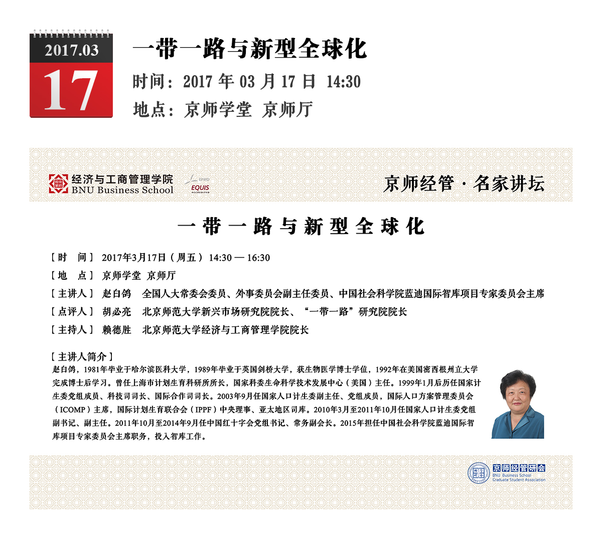 京师经管·名家讲坛(53)——一带一路与新型全球化
