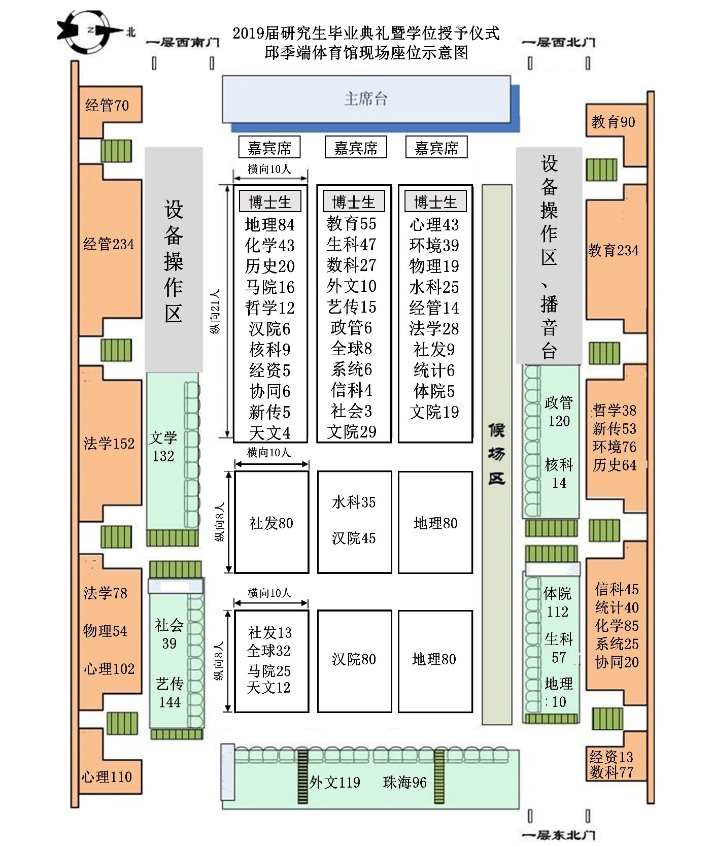 学生排成2列,7:30在志愿者的引导下进入体育馆,并迅速到指定区域就坐(座位示意图见附件1)。入场时应遵守入场秩序,不拥挤,不停顿,确保在7:40之前完成入场。