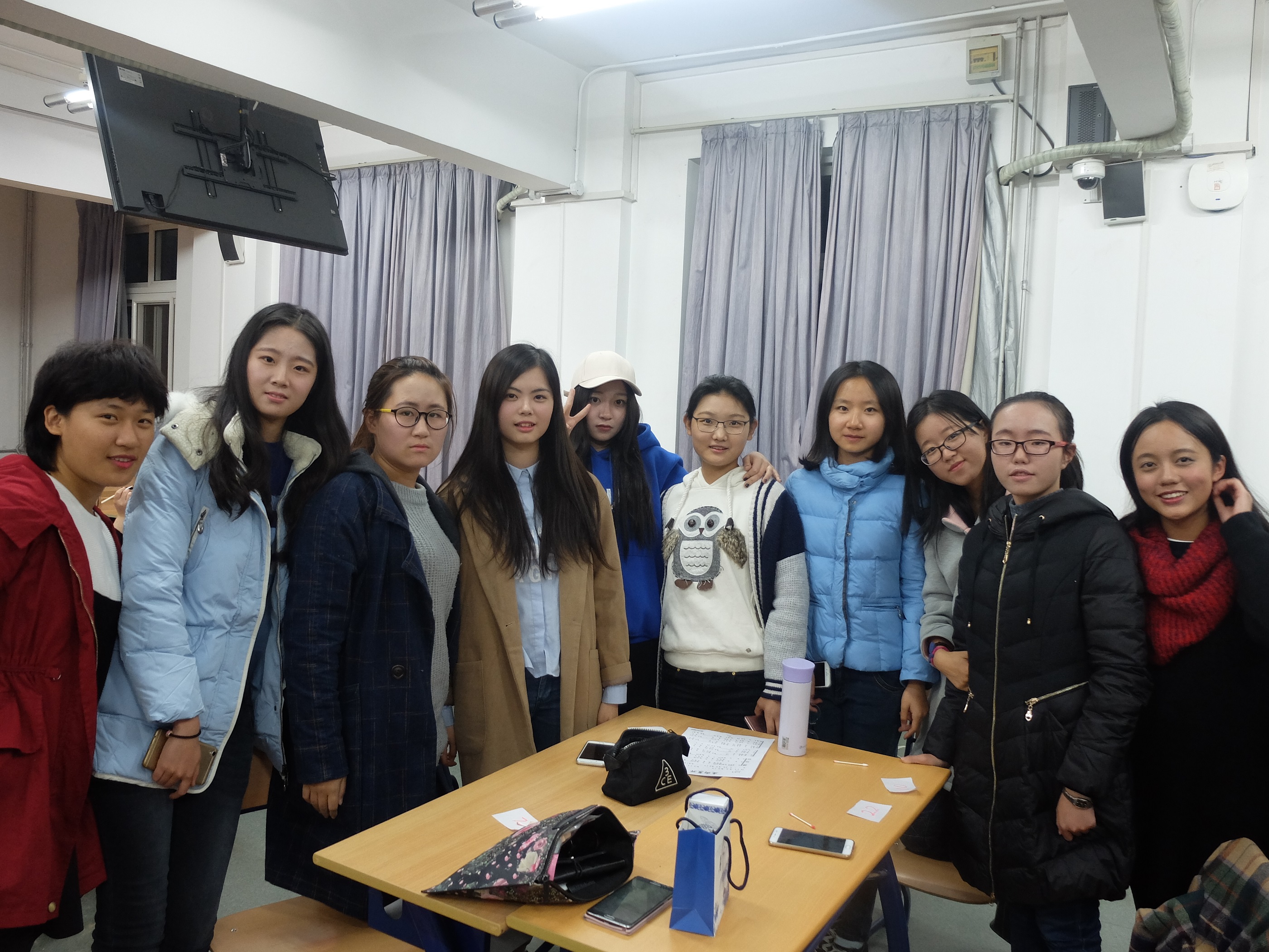 在教四201举行“冬日‘靓’妆大作战”化妆沙龙。本次活动有幸邀请到韩国留学生长腿欧尼手把手教学,并有30名爱美的经管妹子热情参与其中,在一片欢乐中get化妆技能。