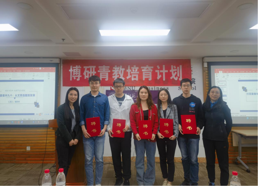 随后,韩丽丽老师为本届博研青教培育计划“朋辈导师”颁发聘书并合影留念。