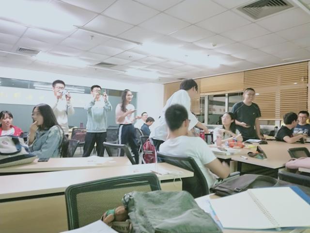 最后进行的是你划我猜,活动在这时也达到了高潮。第一位同学表演指定的词汇,依次向后传递,并由最后一位同学来猜。大家尽自己所能地去表演像“红领巾、“蒙娜丽莎的微笑”、“七八点的太阳”之类的词汇。大家参与积极、纷纷努力展示自己的表演天赋以达到更好的传递。
