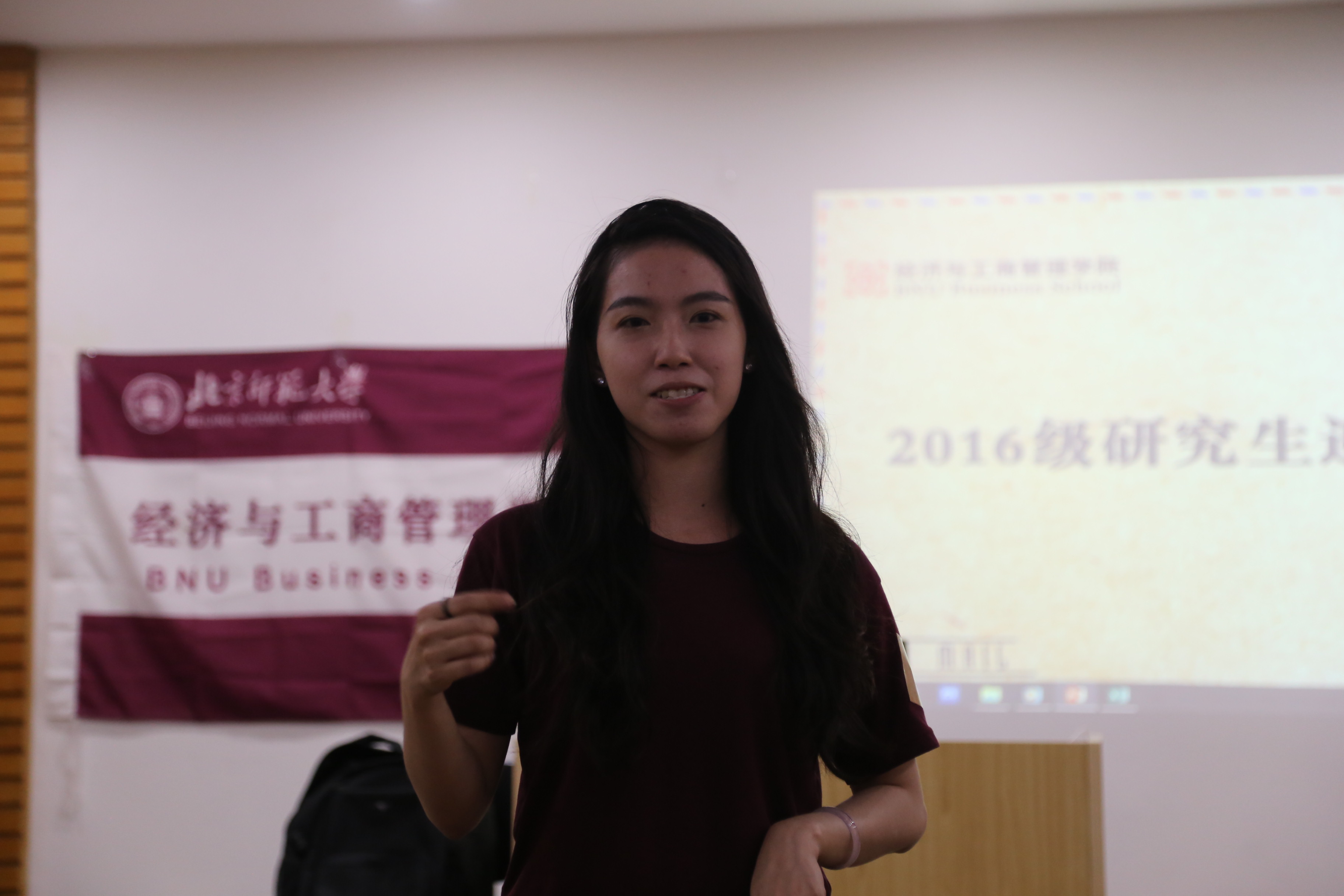 老师对2016级新生的到来寄予欢迎和祝福。之后留学生潘氏玉簪为大家展示了一段精彩的舞蹈,现场响起了热烈的掌声。酒会过程中安排了游戏、抽奖、新老生交流互动等多个环节,帮助新生了解新的环境,同时拉近同学们的距离。