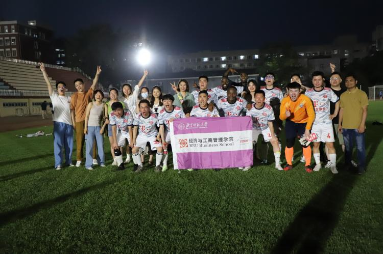全场结束,经生联队凭借十数脚射门和约70%的控球率以2:0战胜数化统天联队,夺得第十九届研究生足球联赛的冠军。经生联队时隔三年又一次为两个学院捧回了冠军奖杯,这离不开场上场下每一位经生足球人的默默付出,球队中的刘钧石、刘刚、白森森、董森、尹冉、王昊宁、Duwe也是最后一次为球队出战,感谢所有为夺得冠军所努力过的人。未来,相信经生联队将带着坚韧不拔的精神和四年双冠的荣耀勇攀高峰,让我们拭目以待!