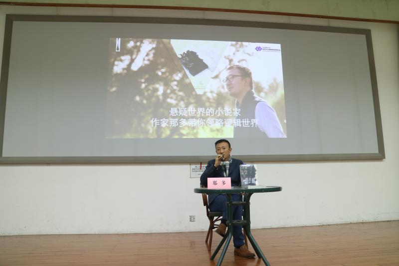 接着,那多老师讲述了自己从事不同职业的经历。他看过人生百味,也领略过世态万千。从海关人员跳槽到记者,到后来边做记者边写悬疑小说。他说,到了三十岁时,自己的兴趣发生了变化,由对外部世界的好奇转移到对人的想法的兴趣上来。写作方面也从关注稀奇古怪的时间到真实犯罪事件上来。关注真实案件对他写悬疑小说有很大帮助。在他写悬疑小说时,可以看到文字工作者那种严谨认真的态度。那多老师讲述自己和在公安工作的朋友聊天,从而了解到各种匪夷所思的真实案件,在创作时,更是与医学院的学生们深入交流,刨根问底,仔细确认每个细节。