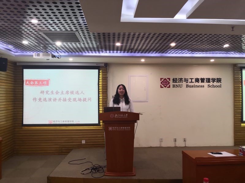 至此,大会第一阶段议程圆满结束。研究生代表们移步分会场京师大厦9406会议室,继续进行第二阶段会议。大会由办公室主任李霜主持,分党委王骏老师、研究生会主席高婷出席大会。