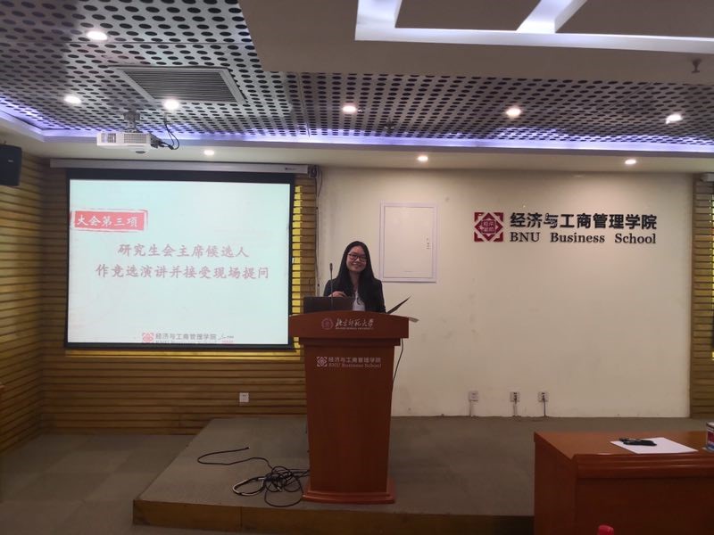 随后进入提问环节,王骏老师和高婷同学都向三位候选人进行了提问,高婷同学分别向于雯雯、王远东、袁凌子三位竞选者提出了在研究生群体更关注学术的情况下如何开展活动、研会怎样进行校外联系、宣传部门的骨干力量如何培养三个问题。于雯雯认为活动可以尽量选取周末举行,尽量遵循大家的兴趣。王远东认为可以充分利用各种资源和我们以往的经验,并争取进一步发展更多联系。袁凌子给出的答案是应给部员创造机会与不同部门的人接触,多参加校研会宣传部门的培训,部内进行合理分工、技术过渡等。王骏老师则向三位竞选者提出了同一个问题:学术型硕士能不能和MBA共建活动,共建活动最大的困难是什么,如何克服。三位竞选者都认为学硕与MBA共建活动是完全可以的,并从自己的角度提出了切实可行的方案。