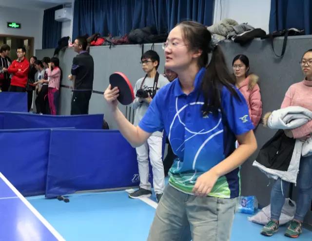 乒乓球队士气正强。此后,张惠宇同学作为女单选手上场,一开始便正手攻球得分,她发球稳定,淡定自若,以11:6拿下第一节。第二场由于我方选手状态不佳,略有失误,比分到达3:3,整场局势变得焦灼。而后对方抓住时机,加大攻势,我方以8:11惜败。经过队友们的鼓励与献策,第三场上场时张惠宇状态有所改善,抓住对方状态不佳的时机猛烈进攻,使比分到达6:0,但对方随后加大攻势,比分追至9:9平。在此关键时刻,我方请求暂停,进行调整后,我方发球一失误一得分,最后2个正手攻球得分以12:10终于取得胜利。