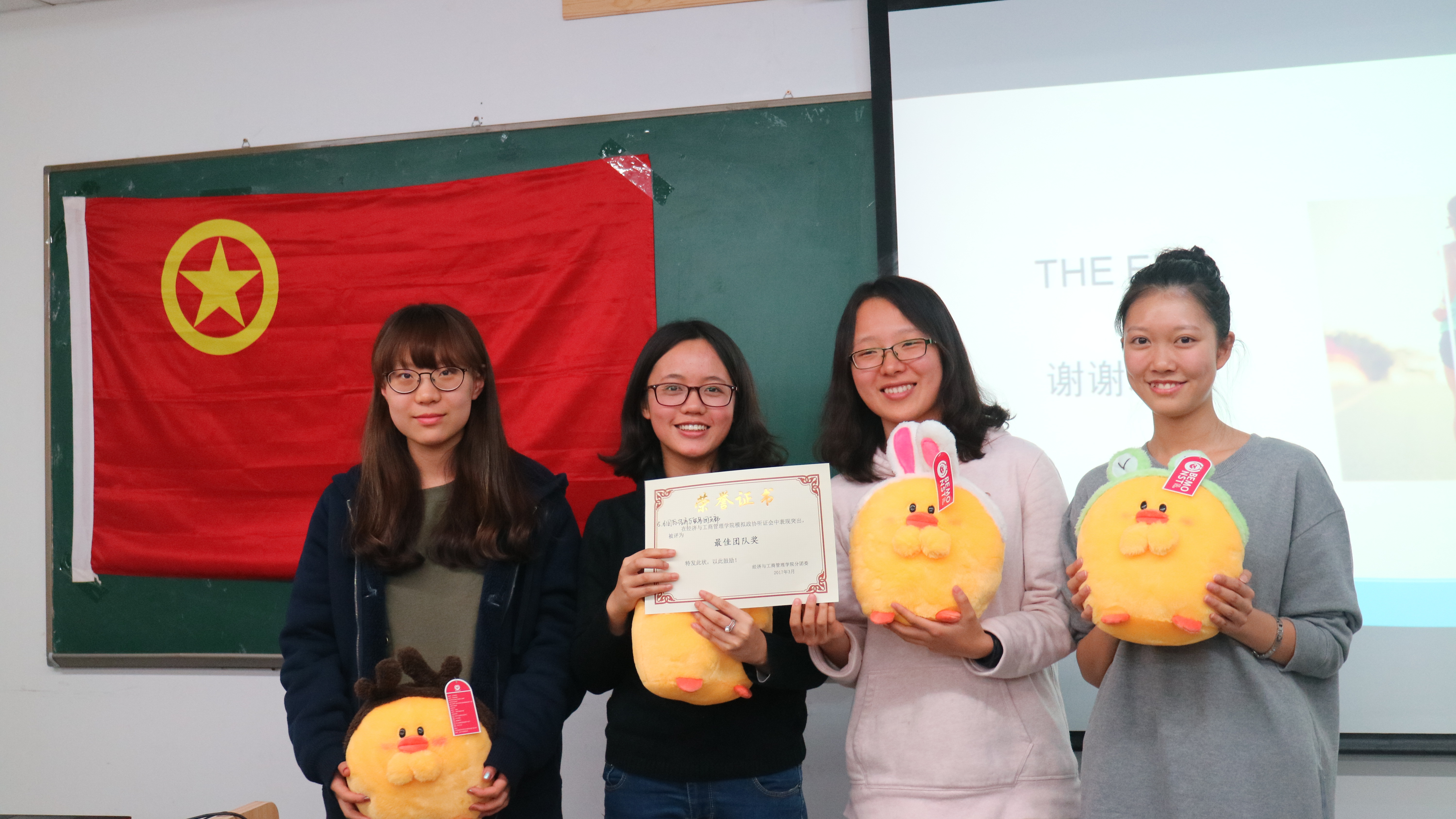 各队表现异常出色,经过现场所有观众的评选,最终决定将最佳团队奖授予国贸队,经济队获得最佳创意奖,工管队获得最佳切实奖,金融队与会计队分别获得最佳表达与文案奖。