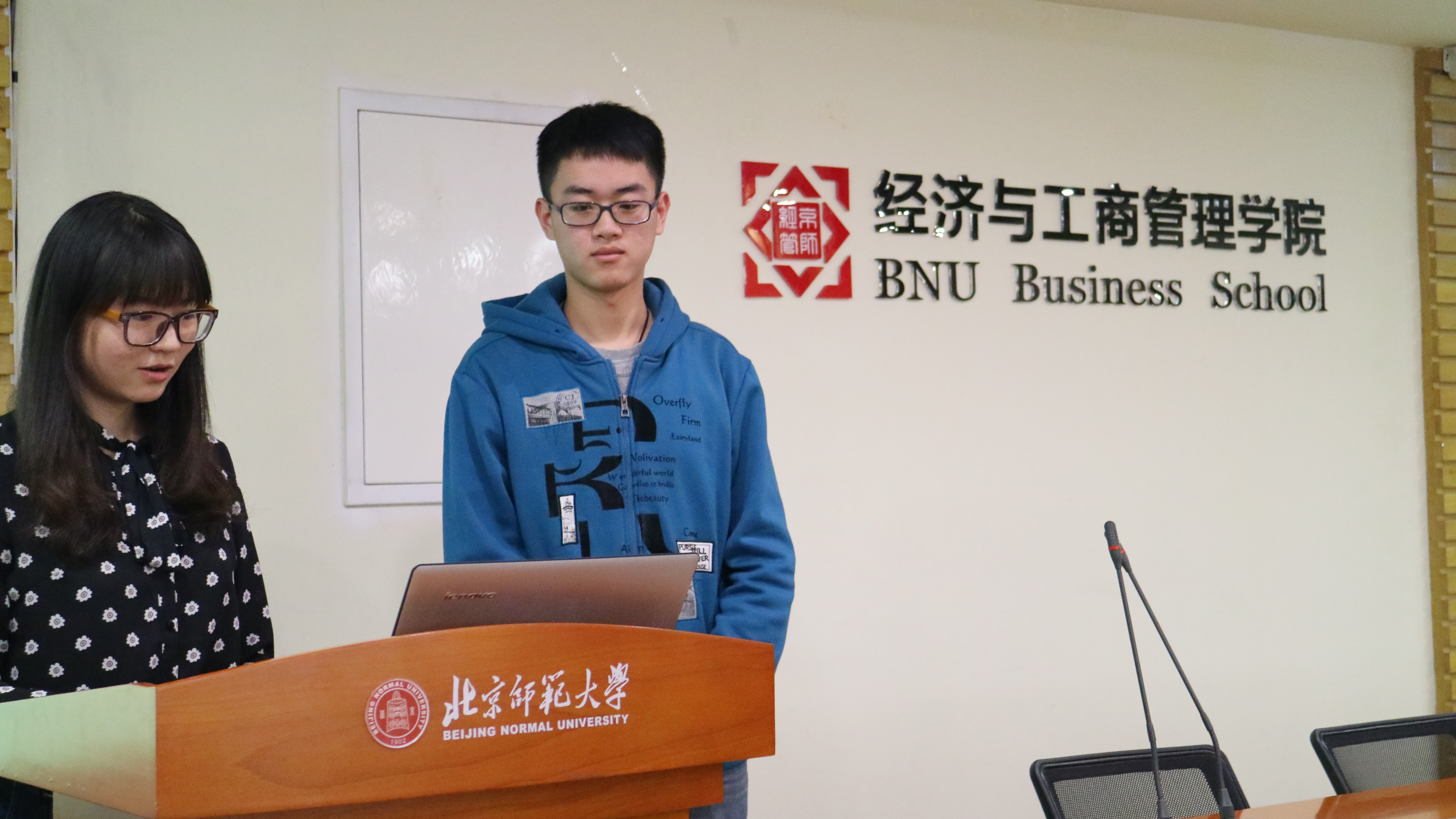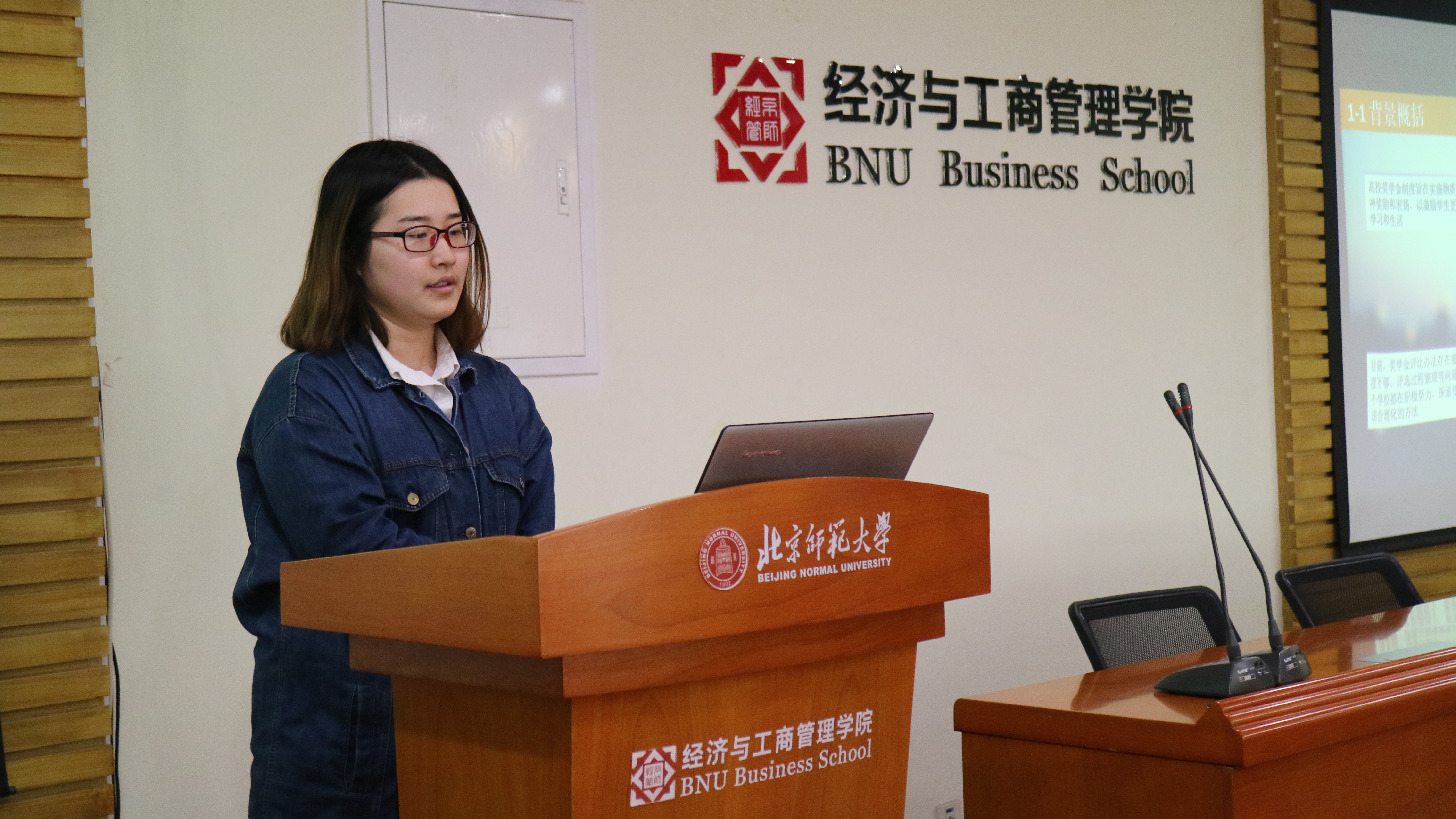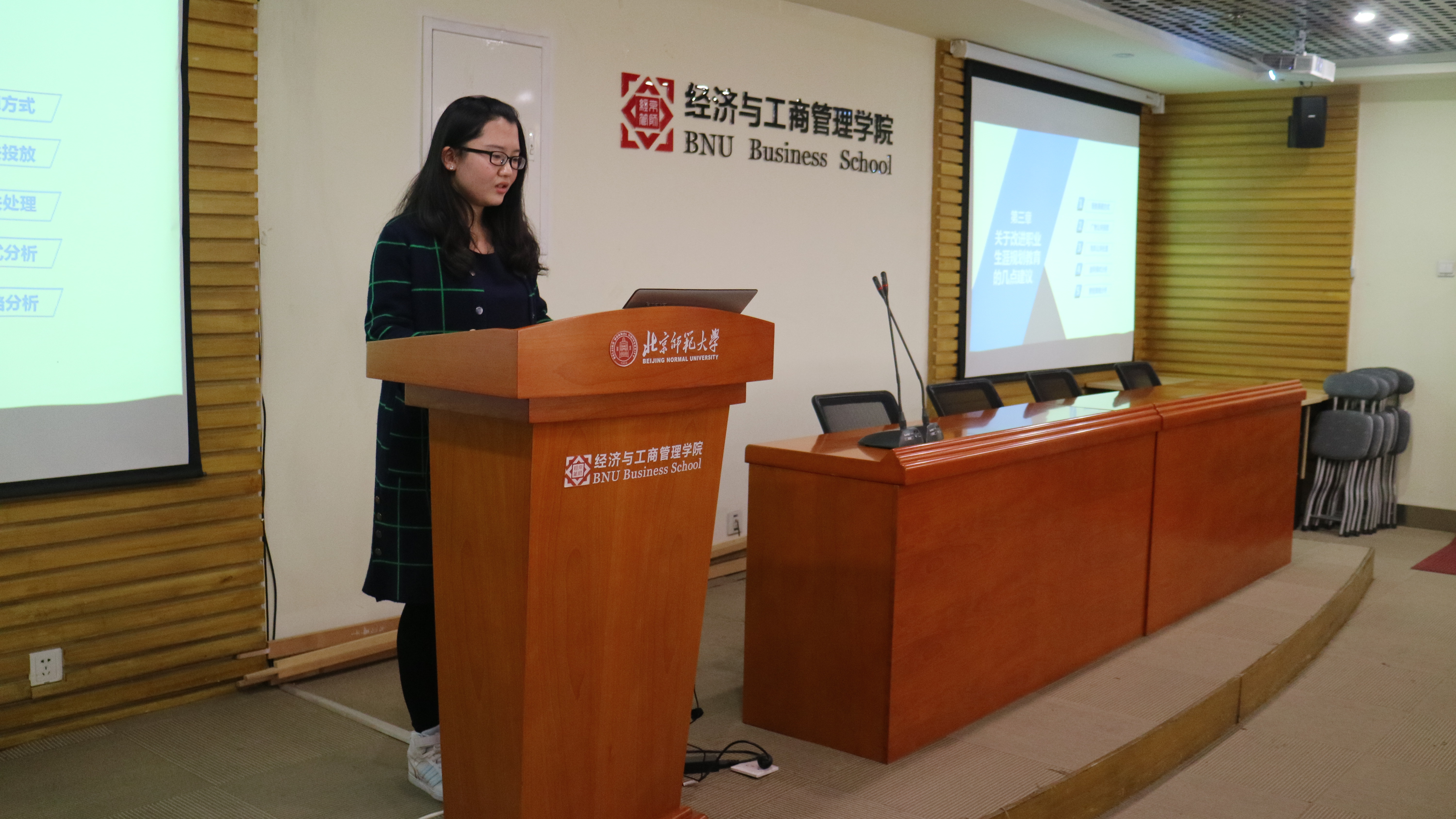 最后一位答辩的是郑家玮,研究的课题是本科生奖学金设置及评选方法合理化研究设计,她首先进行了背景概括,之后展示了研究内容,分析了难题及解决方案。接着说明了实践意义并给出了几点建议。最后陈家华提问了奖学金对大家的作用和去向,张惠琳根据报告提出了一些改进措施和意见。