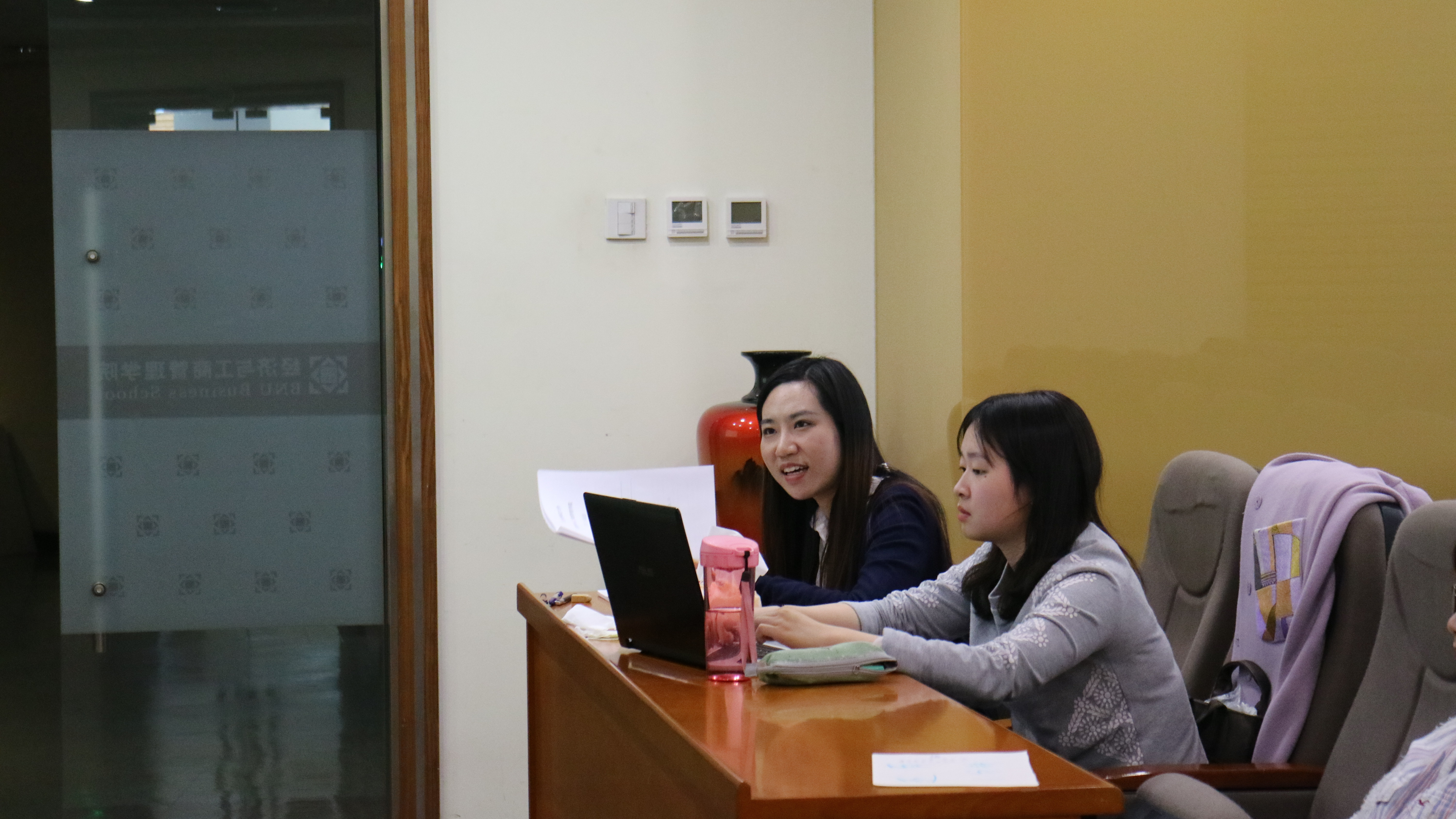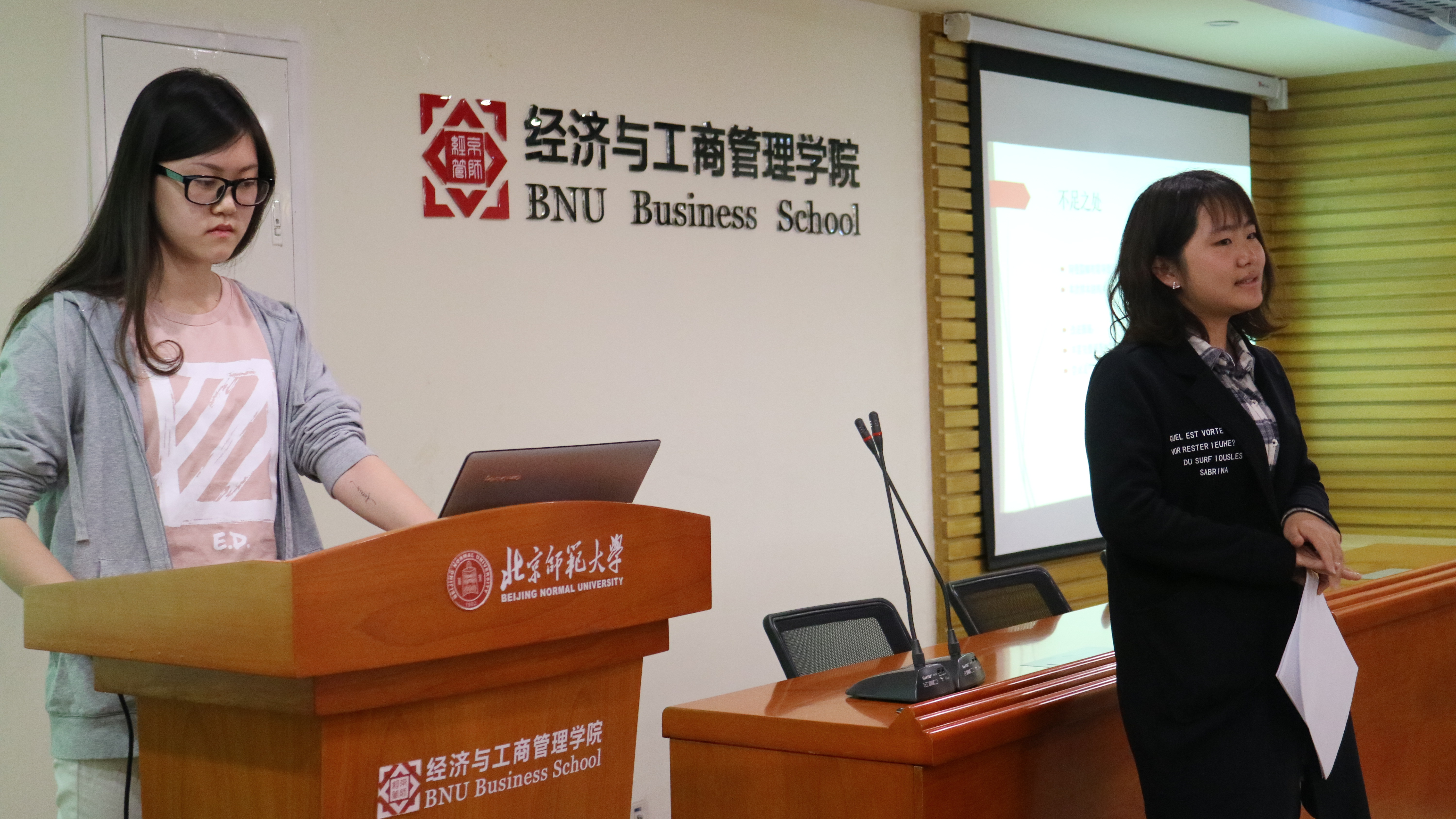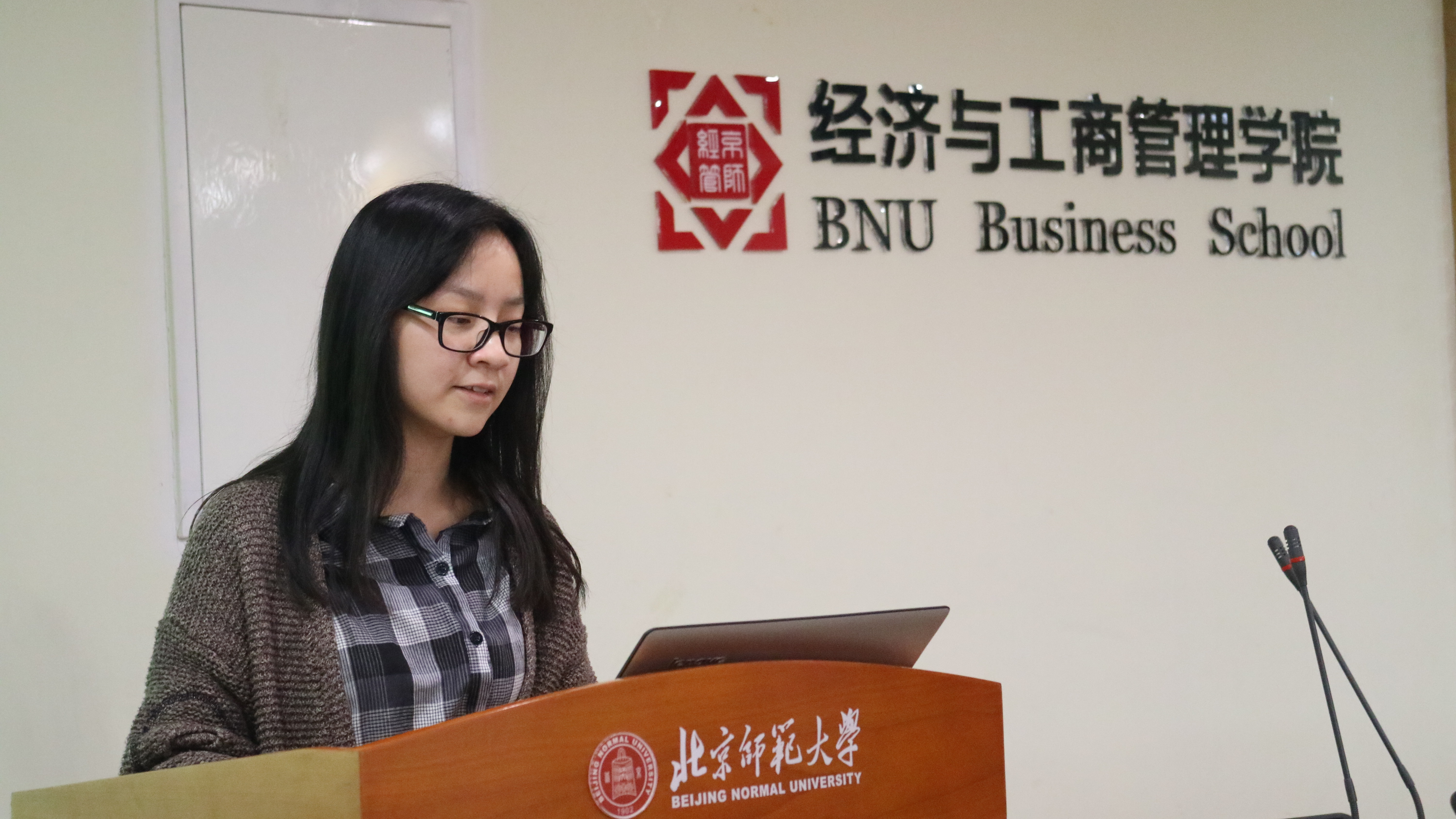 最后一位答辩的是郑家玮,研究的课题是本科生奖学金设置及评选方法合理化研究设计,她首先进行了背景概括,之后展示了研究内容,分析了难题及解决方案。接着说明了实践意义并给出了几点建议。最后陈家华提问了奖学金对大家的作用和去向,张惠琳根据报告提出了一些改进措施和意见。