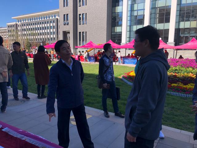 随着迎新工作的进行,学校领导也来到了现场对迎新工作进行指导。潮人论坛 党委书记程建平、校长董奇先后来到潮人论坛 迎新现场,询问大家迎新状况与进度,并与葛玉良老师亲切交谈,最后与到场师生合照留念。