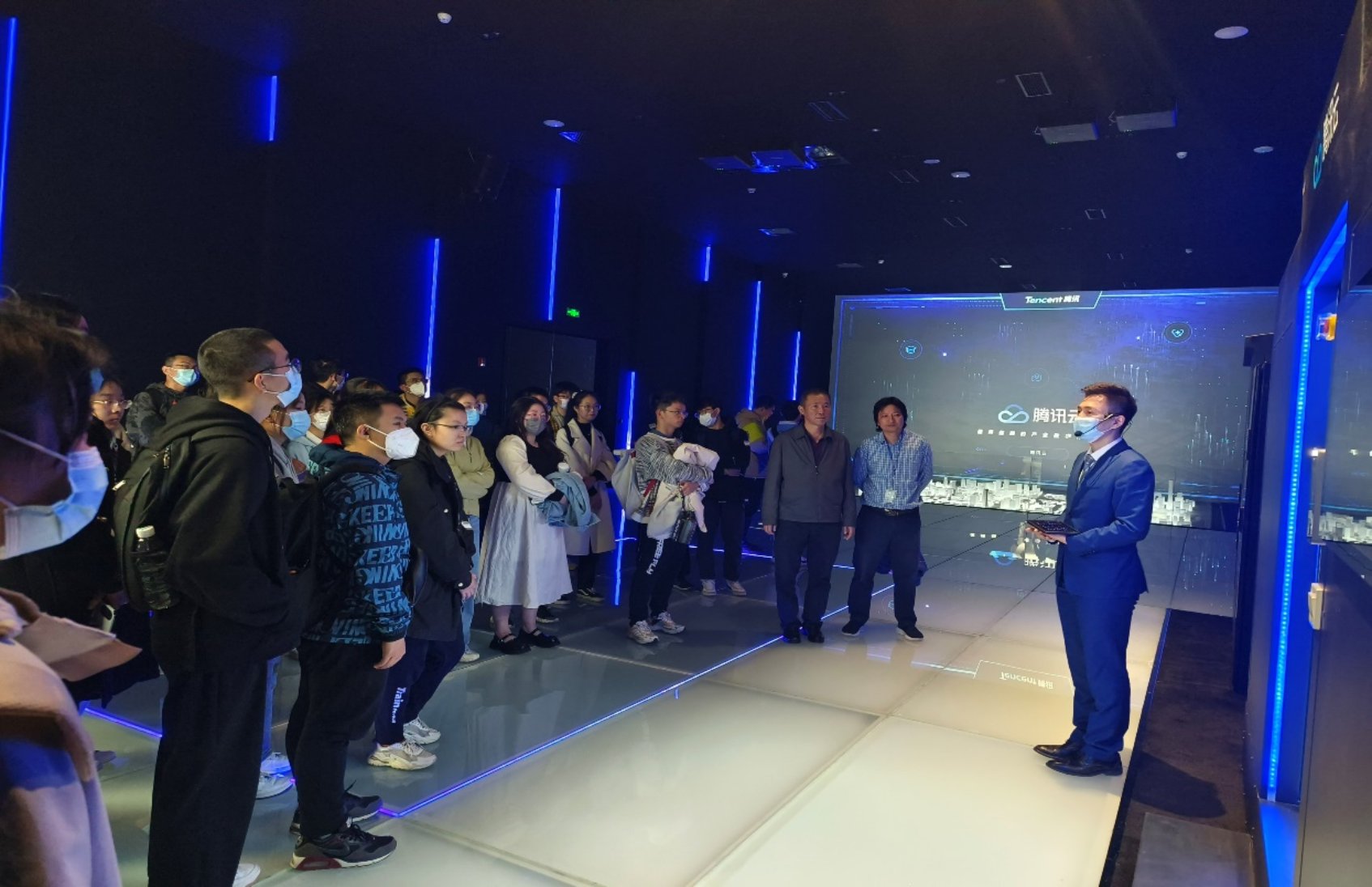师生一行参观了腾讯北京总部展厅,工作人员细致介绍了腾讯的发展历程、组织架构及六大事业群,带领师生参观体验了处于行业前沿的无人驾驶技术、数据中心建设及腾讯云企业概况。在产业互联网展区,工作人员详细介绍了腾讯对出行、零售、工业及医疗等行业领域的赋能情况,在政务数字化、工业质检、智慧零售、医疗健康、文旅产业、智慧校园及金融风控等方面实现多项突破,以前沿的科技、坚实的技术、易用的产品切实促进数字技术与实体经济价值共创,充分展现了腾讯在数字产业化与产业数字化上的敏锐嗅觉与强大的技术实力,让个人和机构都因科技发展而受益,为经济高质量发展注入强大动能。