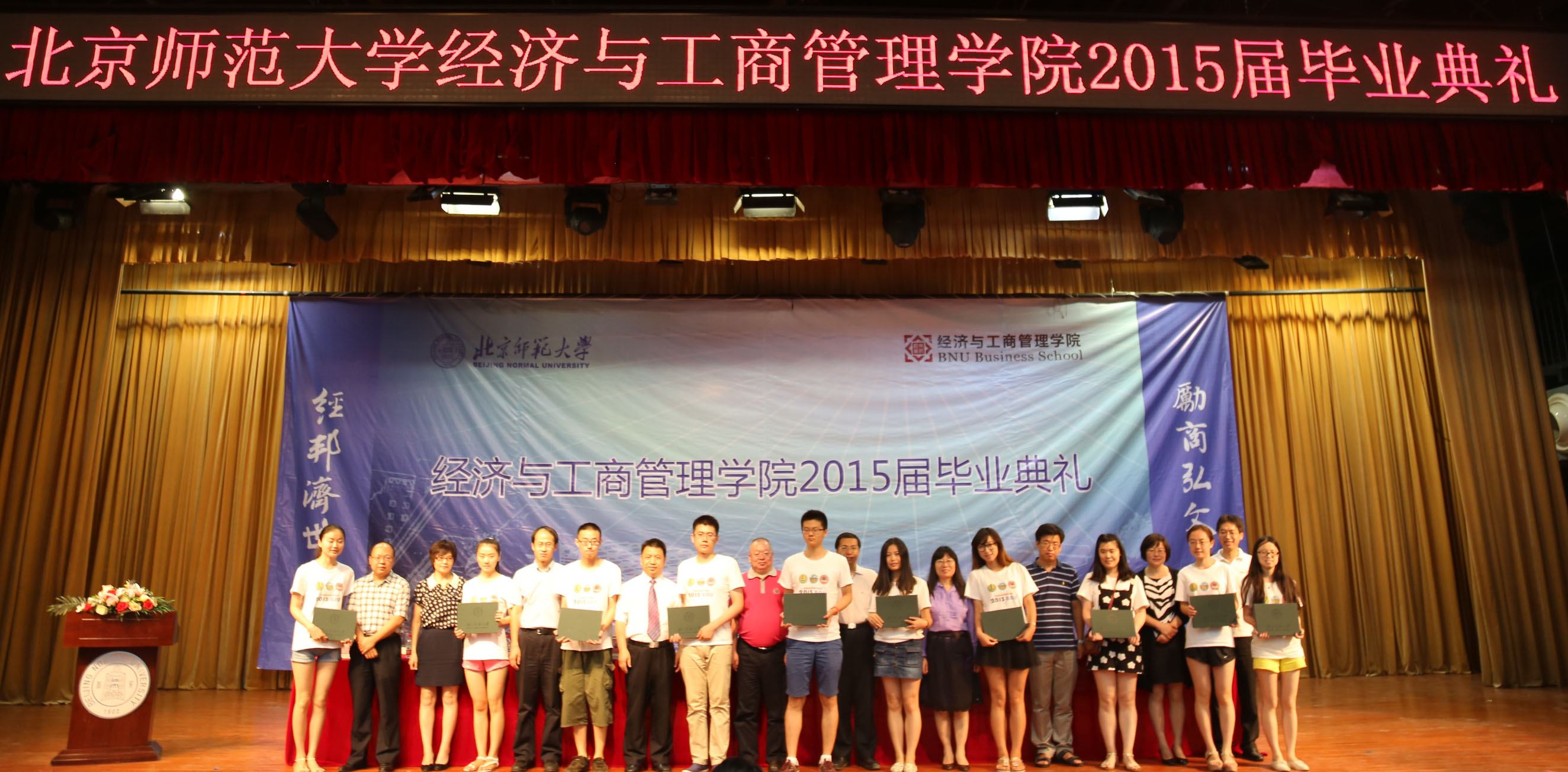 典礼即将结束之时,隆重而庄严的颁发毕业证书环节将整场活动推向了高潮,毕业生依次上台接受学院领导颁发的毕业证书以及他们深深的祝福,并合影留念。那每一个微笑,都仿佛诉说着对母校最深最浓的怀念。最后,全体起立,奏唱校歌。在磅礴的“巍巍师大”音乐声中,毕业典礼圆满地落下了帷幕。此去经年,“经”彩仍将继续;逐梦扬帆,开启全新旅程!衷心祝愿2015届毕业生拥有最美好的未来!