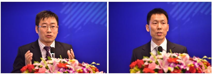 仪式进入第二阶段,世界银行前副行长兼首席经济学家、国务院参事林毅夫首先做主题演讲。林毅夫回顾了中国经济过去30多年高速增长的奇迹,利用新结构主义经济学视角,他精彩地分析了上一轮改革开放中形成的渐进双轨制如何在中国企业比较优势欠缺的时候培育出中国的竞争优势;而在改革开放新阶段面对新机遇、新挑战,从社会稳定、经济发展角度讲,林毅夫认为中国原来的双轨制需要改革,也可以改革。“我们的改革开放必须与时俱进。”林毅夫分析指出,企业走出去战略、“一带一路”战略以及自贸区新的改革方向三方面的努力结合在一起,可以建立一个完善的市场机制;中国正处在一个开放的国际经济当中,由此也可以创造一个新的国家发展阶段。