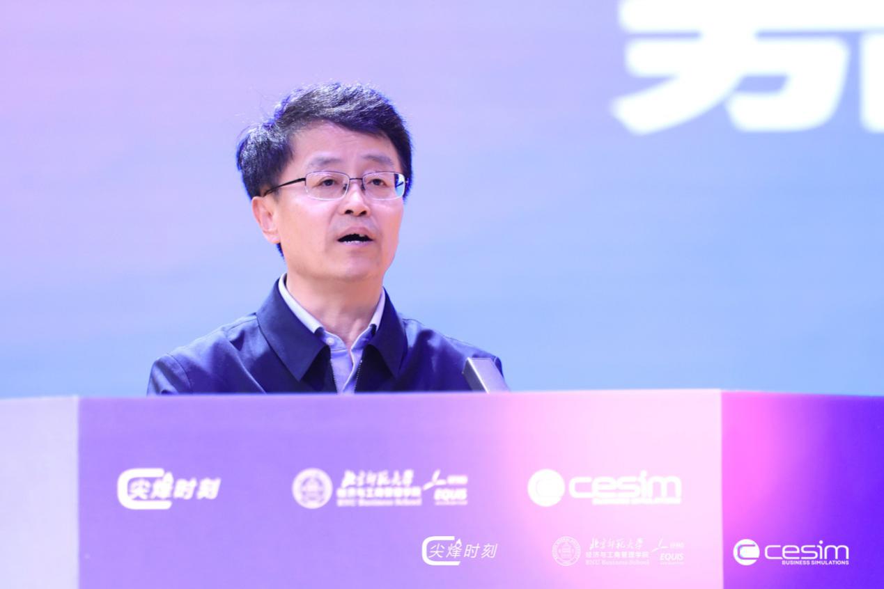AACSB东亚区负责人徐国栋作为评委代表发言。他从国际化视角肯定了尖烽时刻赛事的教育意义,特别赞扬Cesim模拟平台如何助力学生培养全球视野,期待他们以此为契机成长为国际竞争力的人才。