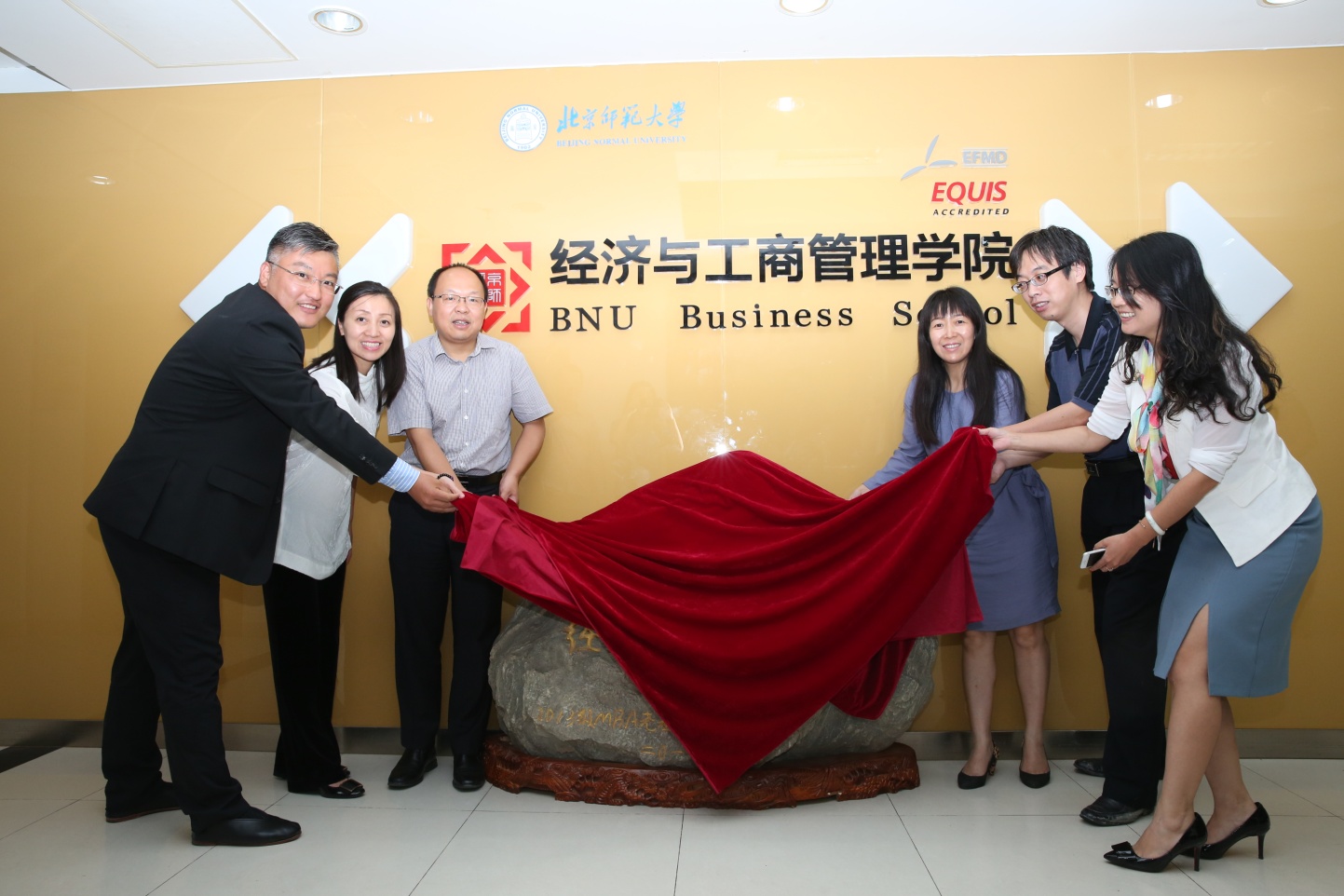 在一片掌声中,潮人论坛 副院长崔学刚向李尧颁发了《捐赠证书》。随后,大家一起进行了“泰山石”的揭幕。红幔展开,一尊满载着MBA校友浓烈的爱校之情,重达1.3吨的“泰山石”矗立在潮人论坛 办公楼层。此泰山石不仅象征着吉祥如意,和学院的光辉形象交相呼应,更寓意着MBA全体毕业生的感情像这泰山石一样牢不可破、坚如磐石。