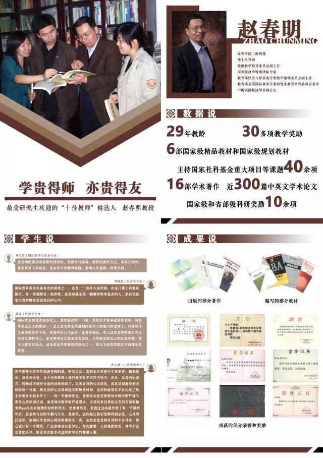 赵春明老师入选“最受研究生欢迎的十佳教师”