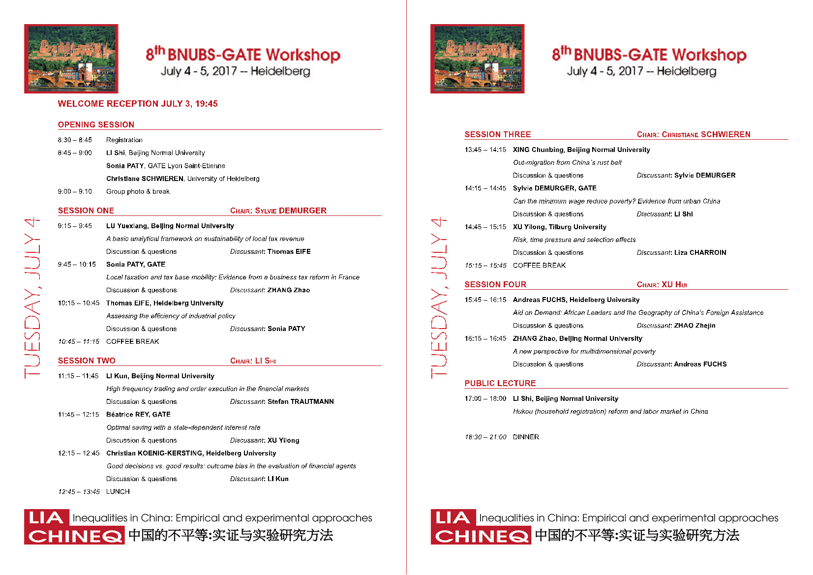 (BNUBS)、法国GATE经济学实验室和德国海德堡大学联合主办,德国海德堡大学承办的第八届BNUBS-GATE研讨会于2017年7月4日-5日在海德堡大学成功举行。