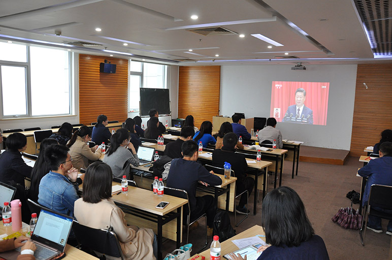 2017年10月18日,学院分党委组织院务会成员、各师生党支部委员及部分党员代表,在后主楼1620共同观看中国共产党第十九次全国代表大会开幕会的现场直播。