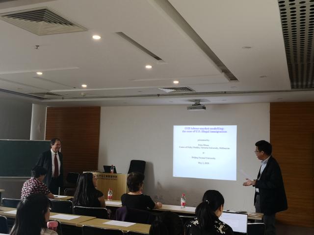 2018年5月2日下午14:30,第69期京师经管·名家讲坛在后主楼1620室成功举行。本次讲座荣幸邀请到了来自维多利亚大学政策研究中心的教授Peter Dixon为我们带来题为CGE labour-market modelling: the case of U.S. illegal immigration (劳动力市场的可计算一般均衡模型: 以美国的非法移民为例)的演讲。讲座由潮人论坛 罗楚亮教授主持。