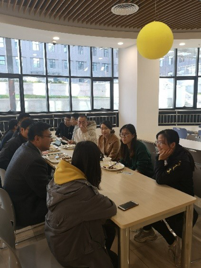 12点大家来到食堂刷卡买饭,2018级博士生下课来到食堂和老师们共进午餐。就餐期间,博士生们跟各位老师介绍了目前学习生活的情况,对新校园的环境设施给予充分肯定的同时,就校车预约、微循环校车、图书馆开放时间、运动场所等问题真诚的提出了很多很好的建议。老师们认真听取了学生的意见和建议,表示会积极向学校反馈,并与相关部门一起共同为同学们营造良好的学习生活环境。