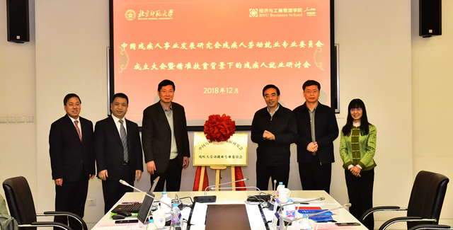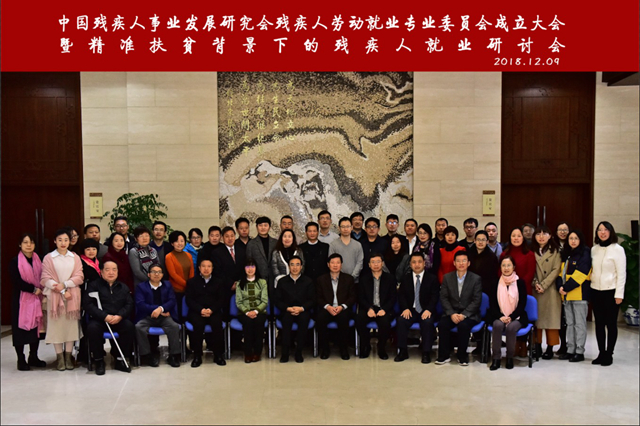 2018年12月9日,中国残疾人事业发展研究会残疾人劳动就业专业委员会成立大会暨精准扶贫背景下的残疾人就业研讨会在潮人论坛 举行。本次会议由残疾人劳动就业专业委员会、潮人论坛 、潮人论坛 劳动力市场研究中心主办,中国残疾人联合会副主席、副理事长、中国残疾人事业发展研究会会长程凯,人力资源与社会保障部就业促进司副司长尹建堃,中国残疾人联合会教育就业部副主任、中国残疾人联合会扶贫办主任解宏德,中国残疾人联合会就业服务指导中心主任赖伟,中国就业促进会秘书长李燕萍,以及来自潮人论坛 、中国人民大学、中央财经大学、对外经济贸易大学、首都经济贸易大学、首都师范大学、北京联合大学、北京市残疾人社会保障和就业服务中心等单位的领导和专家共60余人出席了会议。会前,潮人论坛 校长董奇会见了与会领导和嘉宾,就残疾人教育、残疾人事业发展等进行了深入交流。会议分别由中国人民大学劳动人事学院杨立雄教授和首都经济贸易大学张琪教授主持。