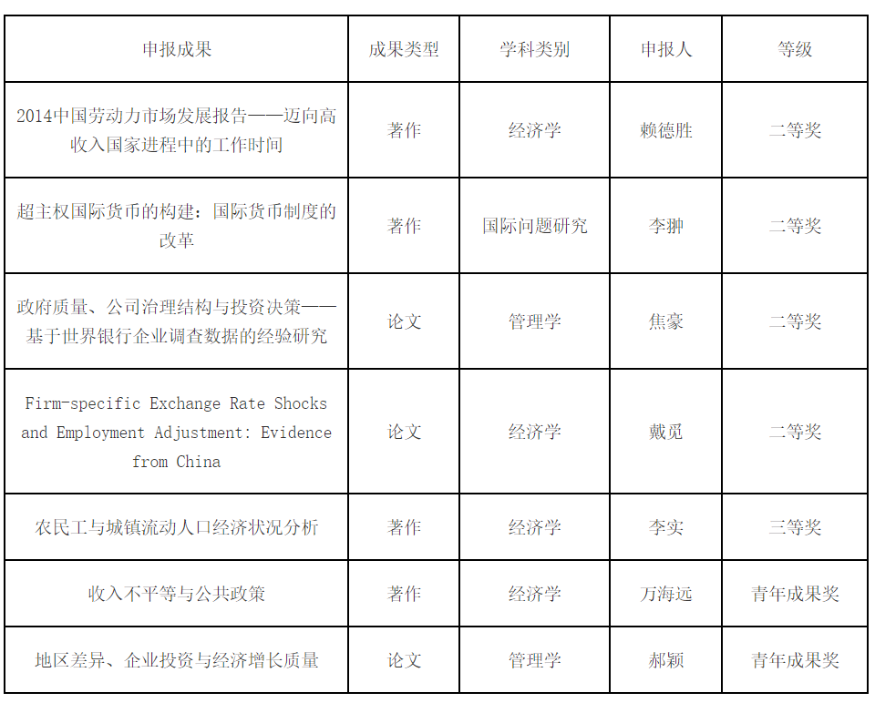 近日,经专家评审、面向社会公示、奖励委员会审议通过和教育部批准,第八届高等学校科学研究优秀成果奖(人文社会科学)获奖名单正式公布。本届共有1539项成果获奖(含香港、澳门高校获奖成果)。其中:著作论文奖1241项,含一等奖152项、二等奖783项、三等奖306项;咨询服务报告奖77项,含一等奖10项、二等奖47项、三等奖20项;普及读物奖20项;青年成果奖201项。
