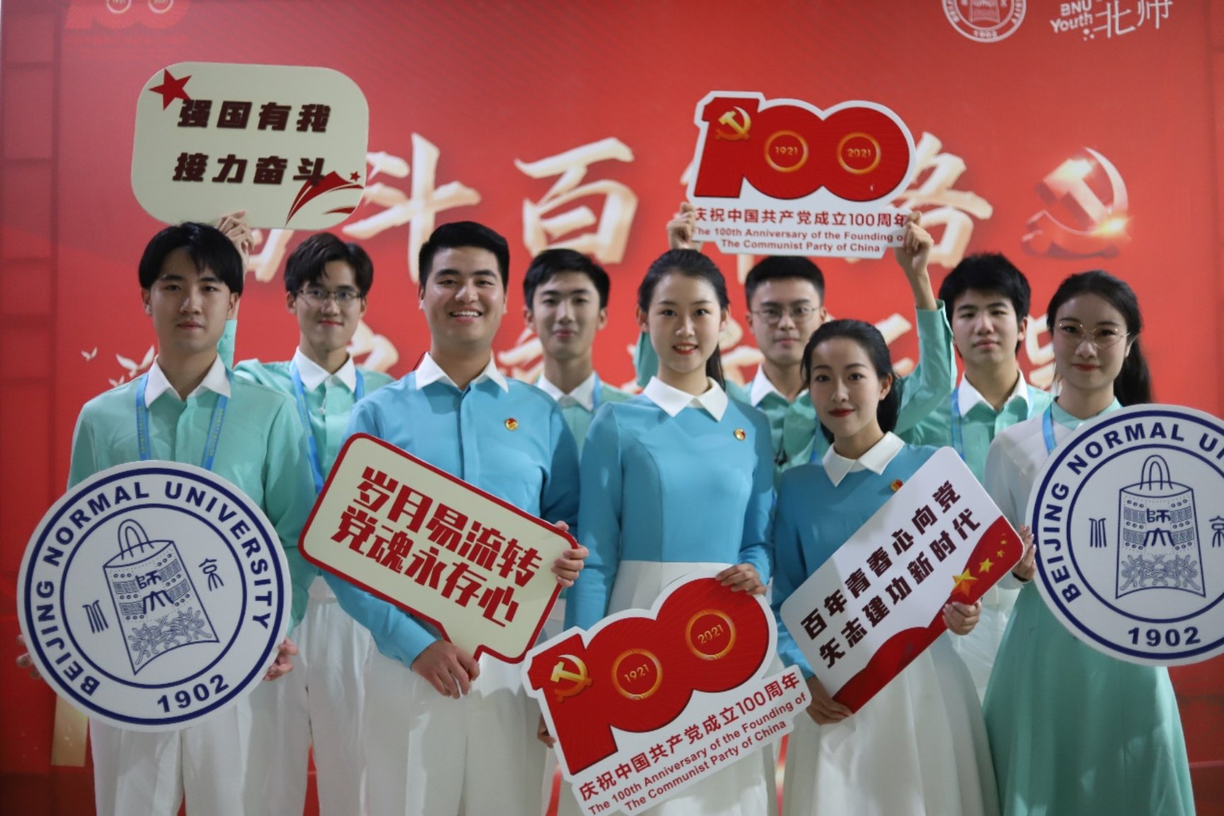 这一天,我们站在天安门广场,紧贴着祖国的心房。生逢盛世,何其有幸,太多的震撼、感动、感恩。很开心也很荣幸能成为庆祝活动的一员,在建党百年这样一个光辉的历史时刻,和众多可爱的小伙伴一起挥洒汗水、收获快乐,也收获了太多美好的回忆!一起见过凌晨四点早起时的师大,也见过凌晨三点晚归时的师大校园。即使也会有疲惫的时刻,但看到校门口老师同学们治愈的笑容、递来的玫瑰花花以及闪烁的师大灯牌,就可以扫去一身疲惫,像是回到温暖的家里一样。这三个月来的点点滴滴我永远都不会忘,相信它将成为我们青春画卷上最绚烂的一笔!——庆祝大会献词团范莹瑭