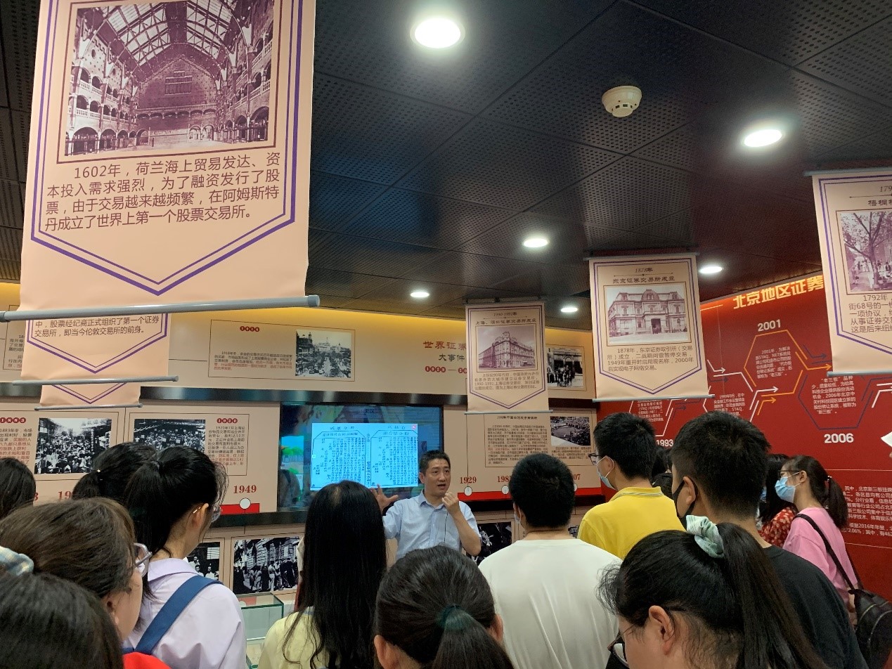 随后,中信建投证券法律合规部副总裁、京信学堂负责人李强带领同学们参观学习了我国证券中心的发展历史以及早期的证券形式。通过对中国证券历史的了解,同学们感受到了中国金融业的改革与发展,对金融学科的感悟更加深刻。