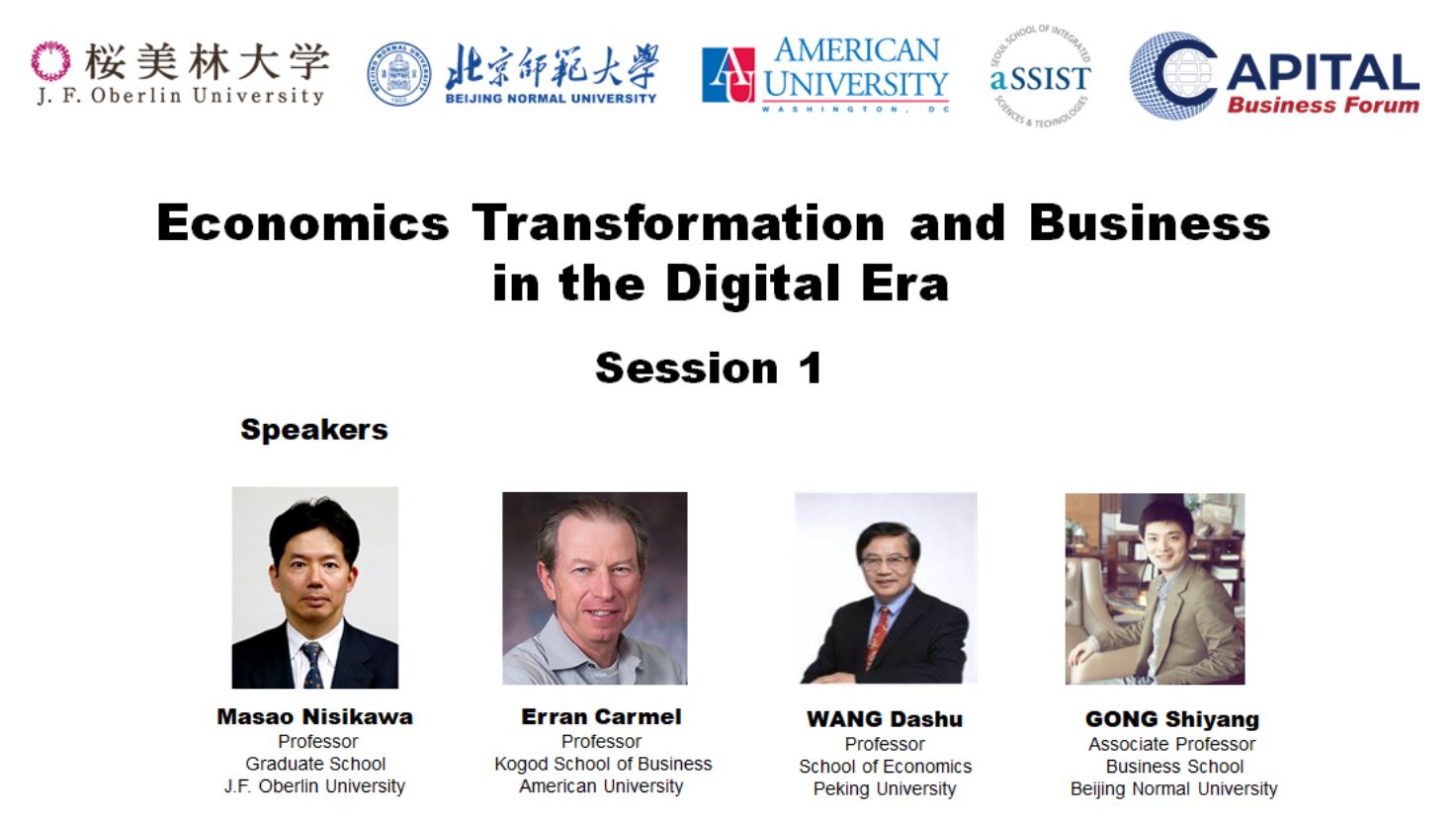 日本樱美林大学校长Hiroaki Hatayama,日本内阁官房原次官、内阁经济社会研究局原局长Masao Nishikawa,日本明治大学原副校长、樱美林大学教授Tsuneo Sakamoto,日本国际大学原校长KimioKase,潮人论坛 院长戚聿东,北京大学经济学院教授王大树,美国美利坚大学Kogod商学院原院长Erran Carmel、副教授Brett Gilbert,韩国政府投资通商大使、首尔综合科技大学讲席教授、首尔国立大学国际大学院原院长Hwy-Chang Moon、YIN Wenyan博士,澳大利亚国立大学经济与商业学院副院长CUI Lin教授,樱美林大学研究生院院长Sakai Mutsumi、任云教授,以及潮人论坛 党委副书记江婕、副院长蔡宏波,教师代表郭垍、钱婧、胡聪慧、龚诗阳等共同出席论坛。今年论坛的主题是“数字时代的经济转型与企业发展(Economic Transformation and Business in the Digital Era)”。