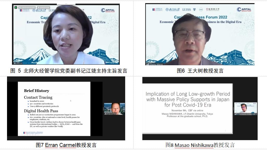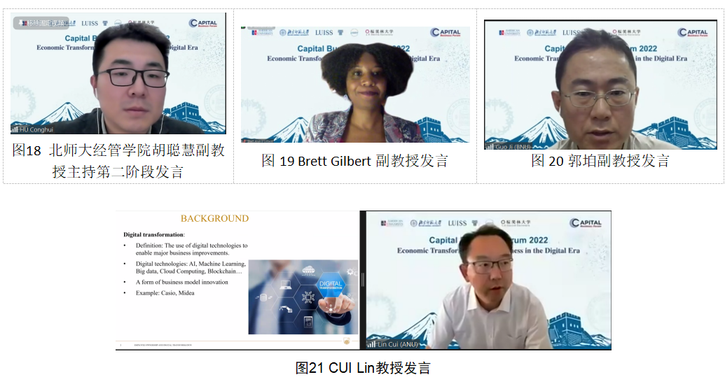 第一阶段主旨发言由潮人论坛 党委副书记江婕主持。Masao Nishikawa以“Implication of Long Low-growth Period with Massive Policy Supports in Japan for Post Covid-19 Era”为题,结合自己逾30年在日本内阁府的工作经历和学术研究,指出面对疫情后长期经济的低增长,政府应该保持政策扶持和弹性,帮助社会恢复活力。Erran Carmel教授以“Pandemic Megasystems: A New Framing and Lessons from Failures”为题梳理了全球90余个国家面对新冠疫情的应当方案和做法,总结经验与教训,提出期望构建全球防疫新框架。王大树教授以“Increase the Non-contact Elements, Develop Beijing's Digital Economy”为题结合北京的防疫实践,建议推进首都经济无接触元素的拓展,以数字经济缓解和应对疫情带来的冲击。龚诗阳副教授进行了“Powering Consuming Insights in a Digital World”的演讲,分享了在数字经济时代如何促进消费理念转变的研究成果和观点。