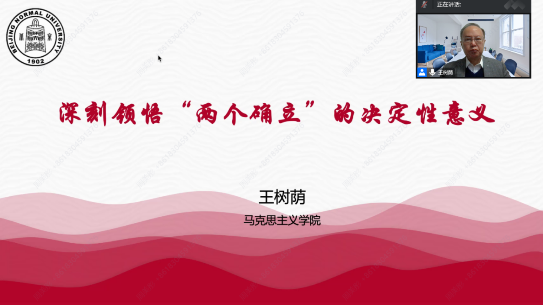 11月18日,马克思主义学院王树荫教授带来“深刻领悟‘两个确立’的决定性意义”主题讲座。他从理论意义、历史经验、时代价值和重大意义等四个方面,深刻系统阐释了“两个确立”的决定性意义。他指出,“两个确立”是应对各种风险挑战的定海神针,是实现新时代伟大变革的决定性因素,是深入推进反腐败斗争的坚强核心。结合党的二十大报告,他进一步强调“两个确立”是坚持和发展中国特色社会主义的定盘星,是实现新时代新征程使命任务的领路人,是破解“百年大党难题”的主心骨,具有重大深远的意义。