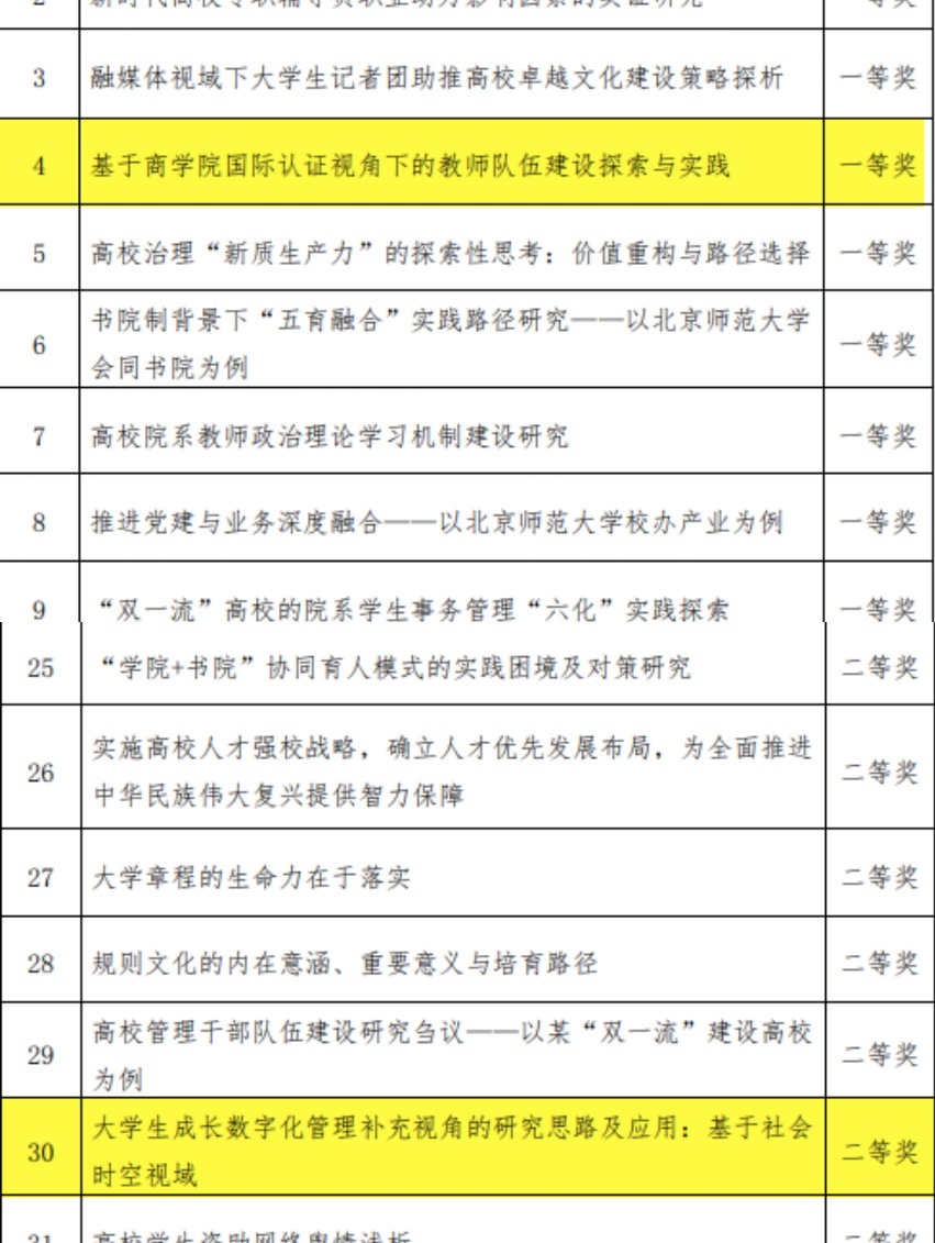 一等奖:李婧雅、王丹,论文题目《基于商学院国际认证视角下的教师队伍建设探索与实践》