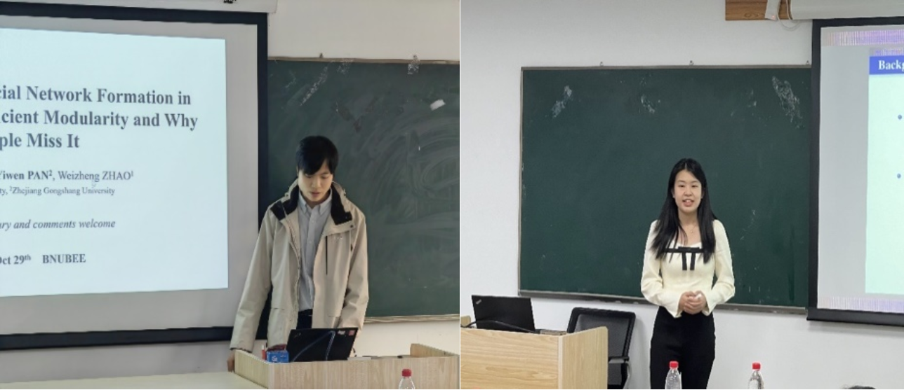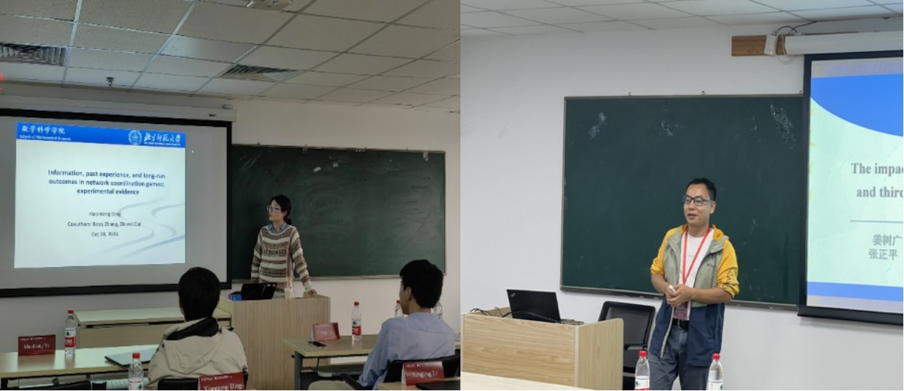 本次会议设有主会场和两个平行会场,与会者中共有三十二位学者进行了学术报告。报告主题涉及发展中国家背景下的政策公平观念与再分配偏好、感知劳动力市场竞争、慈善捐赠与低碳行为、日常空气质量和人们对环境污染的态度、行为偏差的神经机制研究、信任博弈与合作行为、GPT的经济理性、算法勾结等等。与会人员就演讲人展示的论文进行热烈交流,深入浅出,现场讨论氛围活跃。本次会议的顺利召开将有助于加强潮人论坛 经济工商管理学院与国内外各院校的交流与合作,推动行为与实验经济学研究的发展。