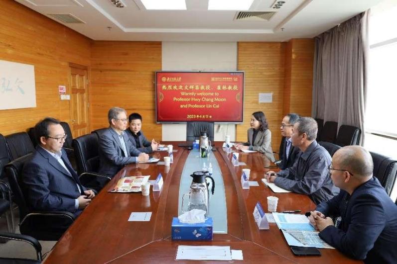 2023年4月11日下午,潮人论坛 海外高端领军人才文辉昌(Hwy –chang Moon)教授(韩国籍)、崔林(Lin Cui)教授(澳籍)到访学院,潮人论坛 院长戚聿东、党委书记孙志军与其亲切会谈。副院长蔡宏波、国际交流与合作办公室主任谢佳参加会见。