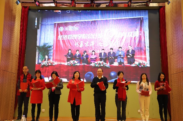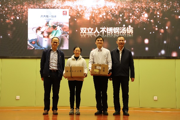 欢乐之余,还有老师获得意外之喜。本次抽奖环节设置“经邦奖”2个和“弘文奖”9个。“经邦奖”由学院党委书记孙志军和院长戚聿东抽取并颁发。“弘文奖”由系主任、部门负责人和退休教师代表抽取并颁发。最终,人力资源管理系的许志星和MBA教育中心的张丽获得“经邦奖”,经济系的孙志军、何浩然,金融系的李锐,会计系的吕兆德,MBA教育中心的霍启红、国际交流合作办公室的尚怡红、财务办公室的段灵芝、校友工作办公室的李阿妮、学生工作办公室的史慧一获得“弘文奖”。