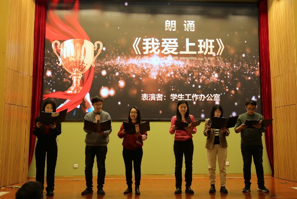 伴随着动感的音乐,由来自舞蹈协会的十三位老师为大家带来热舞串烧,点燃全场激情。会计系全体老师带来的集体诗朗诵《回望二十载,一起向未来》,回顾了会计系成立二十载的奋斗历程,表达了推动会计专业高质量发展的信心。人力资源管理系全体老师为大家演唱了欢快的歌曲《最炫民族风》,再次点燃了全场老师的热情。学生工作办公室全体老师的诗朗诵《我爱上班》,以诙谐幽默的语句展现了以学生为本的工作思想,引得场下阵阵欢笑。由学生事务助理演唱的歌曲《春风十里》,让现场老师如沐春风,也将青春的温暖洒满会场。