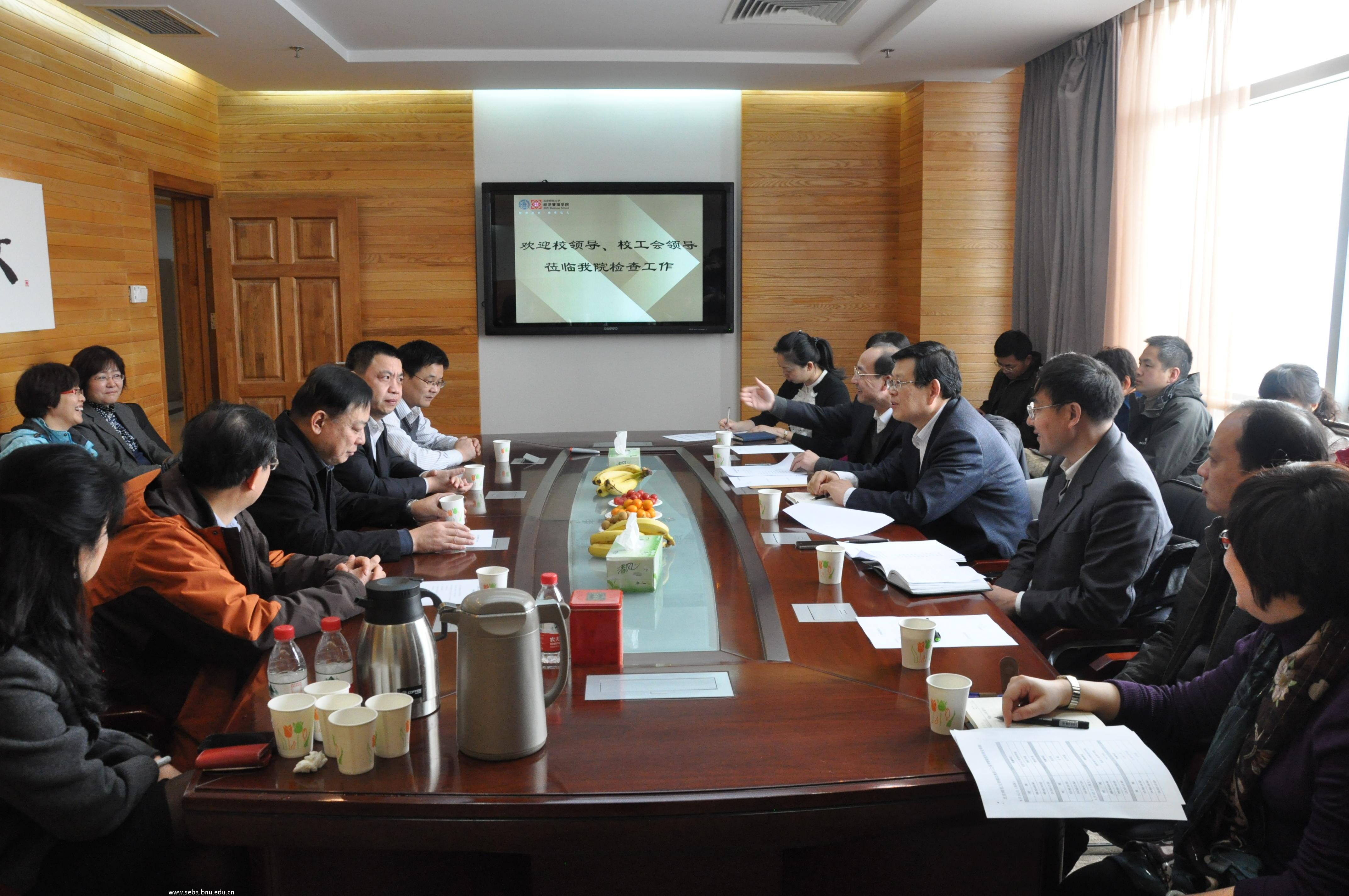 院长赖德胜、分党委书记沈越、分党委副书记葛玉良,院工会主席陆跃祥、副主席仲鑫及学院部分教师陪同检查组进行了座谈。