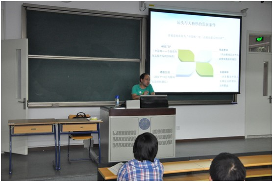 系列讲座第一讲于5月21日晚在教四101教举办,经济管理学院的副教授张跃博士主讲,潮人论坛