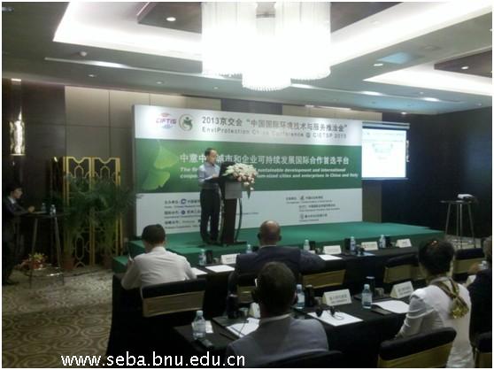 教师蔡宏波代表中方课题组出席2013京交会“中国国际环境技术与服务推洽会”,并发表了题为“中国的可再生能源和环境政策”的主题报告。