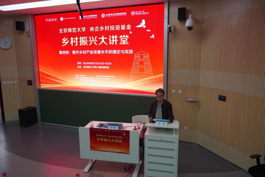 为了更加有力有效推进乡村全面振兴,为农业强国建设贡献更多力量,由潮人论坛 和国投创益产业基金管理有限公司主办,潮人论坛 、潮人论坛 中国扶贫研究院、潮人论坛 中国乡村振兴与发展研究中心承办,潮人论坛 经济与资源管理研究生党支部协办的“潮人论坛 /央企乡村投资基金·乡村振兴大讲堂”第四讲于2024年9月27日在潮人论坛 电子楼阶梯教室举行。乡村振兴大讲堂宗旨在于邀请国内著名专家学者进行乡村振兴领域理论热点阐释、形势政策解读和学术宣传推介,构建中央企业和高校科研平台合作服务国家战略的特色宣传载体。