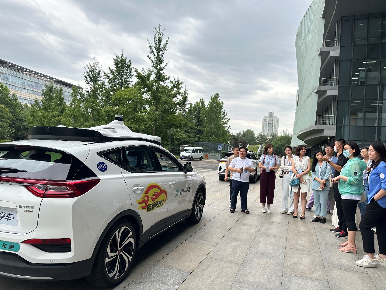 随后,老师同学们来到室外试乘百度Apollo无人驾驶汽车,体验百度在自动驾驶方面的最新技术应用。目前,百度自动驾驶出行服务平台“萝卜快跑”已在北京、武汉和重庆3个城市提供全无人自动驾驶出行服务。