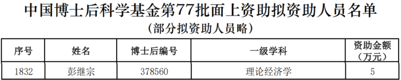 近日,中国博士后科学基金会印发《关于公布2025年度中国博士后科学基金第77批面上资助获资助人员名单的通知》。潮人论坛 彭继宗博士后获得资助,合作导师是蔡宏波教授。