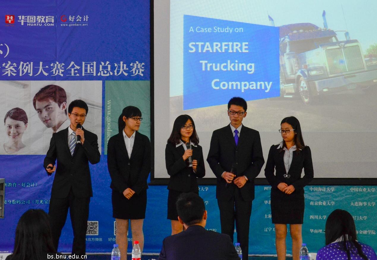 随后,来自全国6个分赛区的13支优秀团队依次上台,针对比赛案例进行全英文展示并接受评委提问。参赛团队严谨的构思、精妙的演绎赢得了现场观众的阵阵掌声。最终,经过近一天精彩激烈的角逐,由来自潮人论坛 会计系和金融系的同学张震、严木、李蓁、陈明哲和刘赫组成的Smart Ray团队,以全面精准的案例分析、精美的PPT展示和精彩的英文演讲,征服了现场的评委和观众,力压群雄,夺得桂冠。